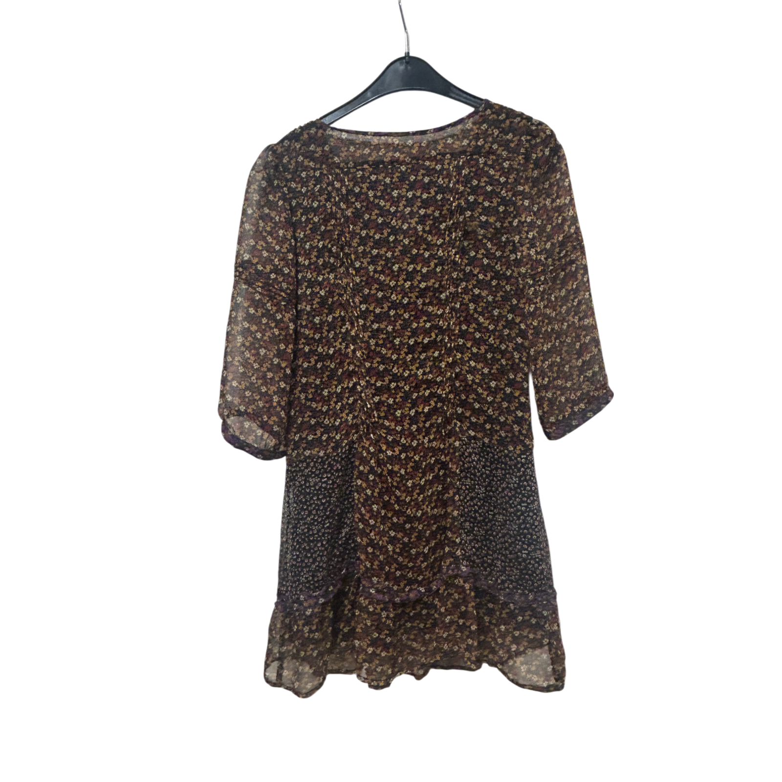 Erleben Sie den perfekten Boho-Chic-Look mit diesem The XDYE Kleid in Größe M. Der luftige, fließende Stoff mit zartem Allover-Muster macht dieses Kleid zu einem perfekten Begleiter für den Alltag oder besondere Anlässe. Die zarten Volants am Saum und die verspielten Details verleihen dem Kleid eine feminine Eleganz.