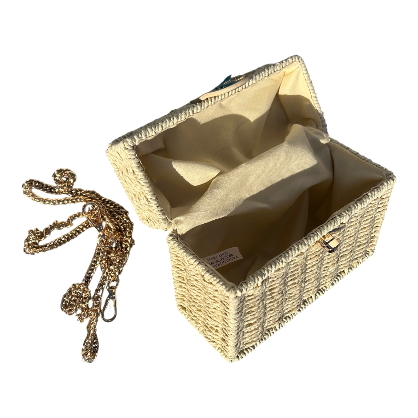 Strohtasche Sand Rechteckig Damen Tasche Sommer Korbtasche Drehverschluss Neu