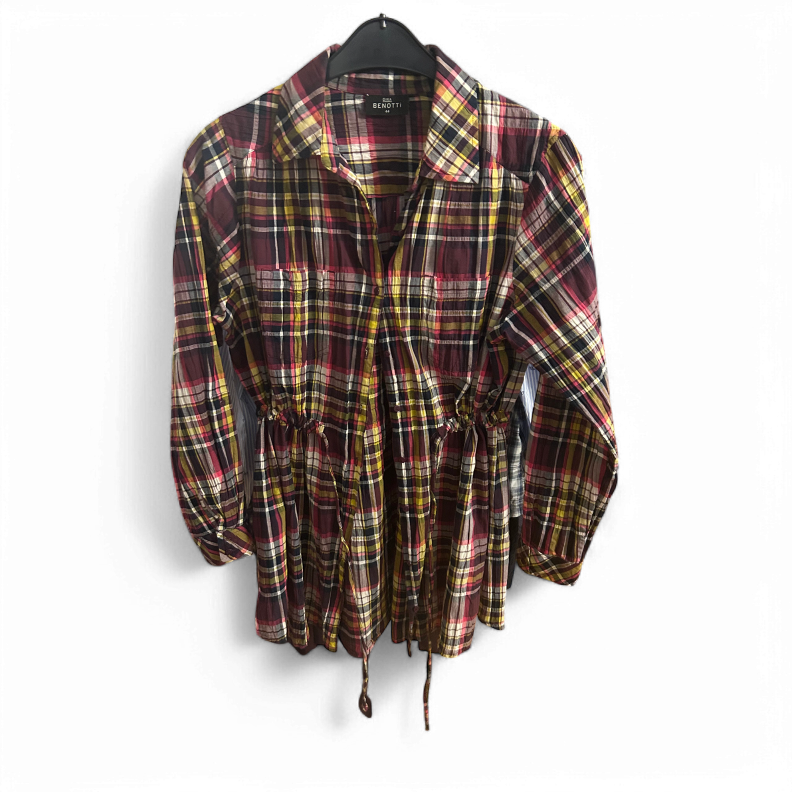 Gina Benotti Tunika Damen Gr 44 Karo Muster Tunnelzug Bequem Freizeit Baumwolle