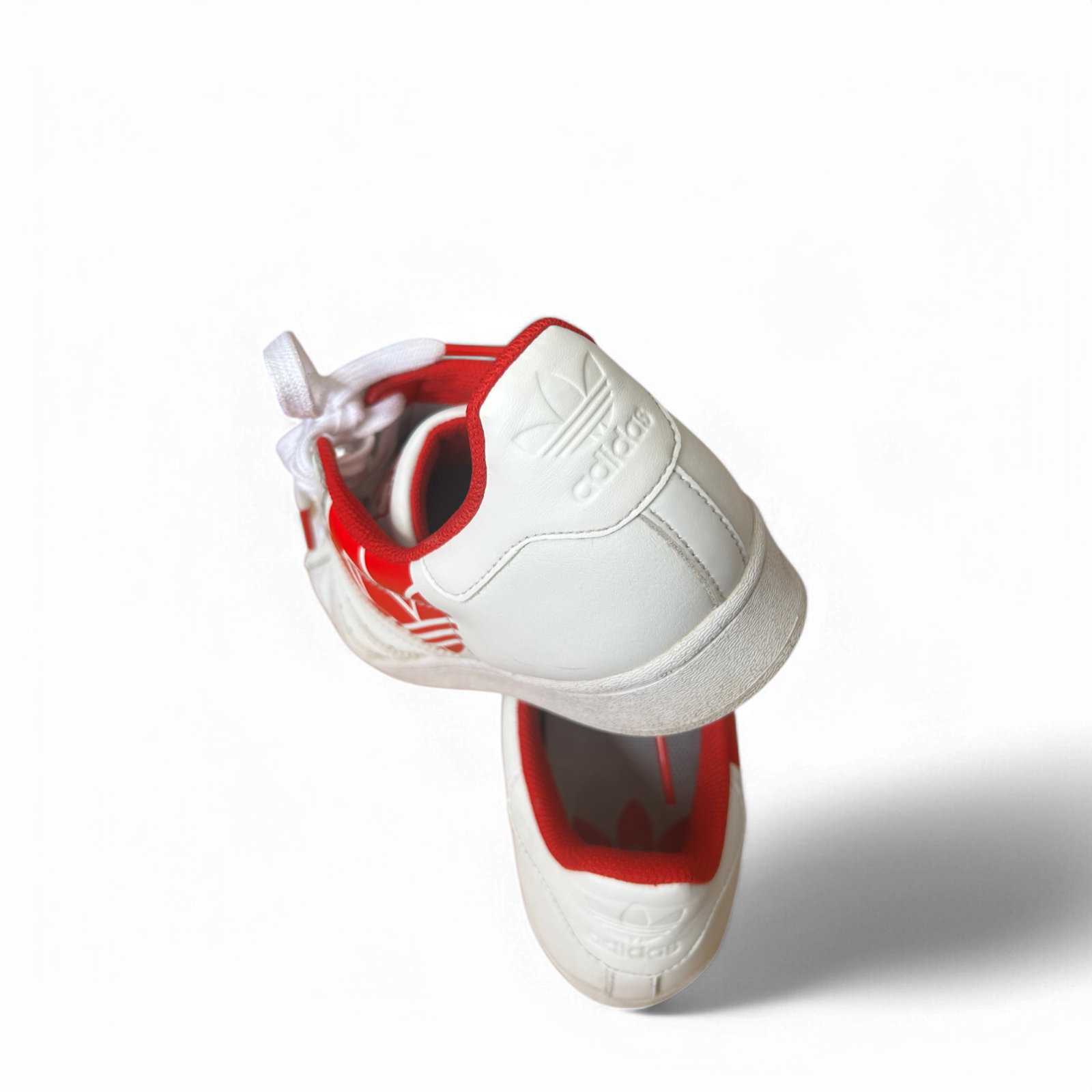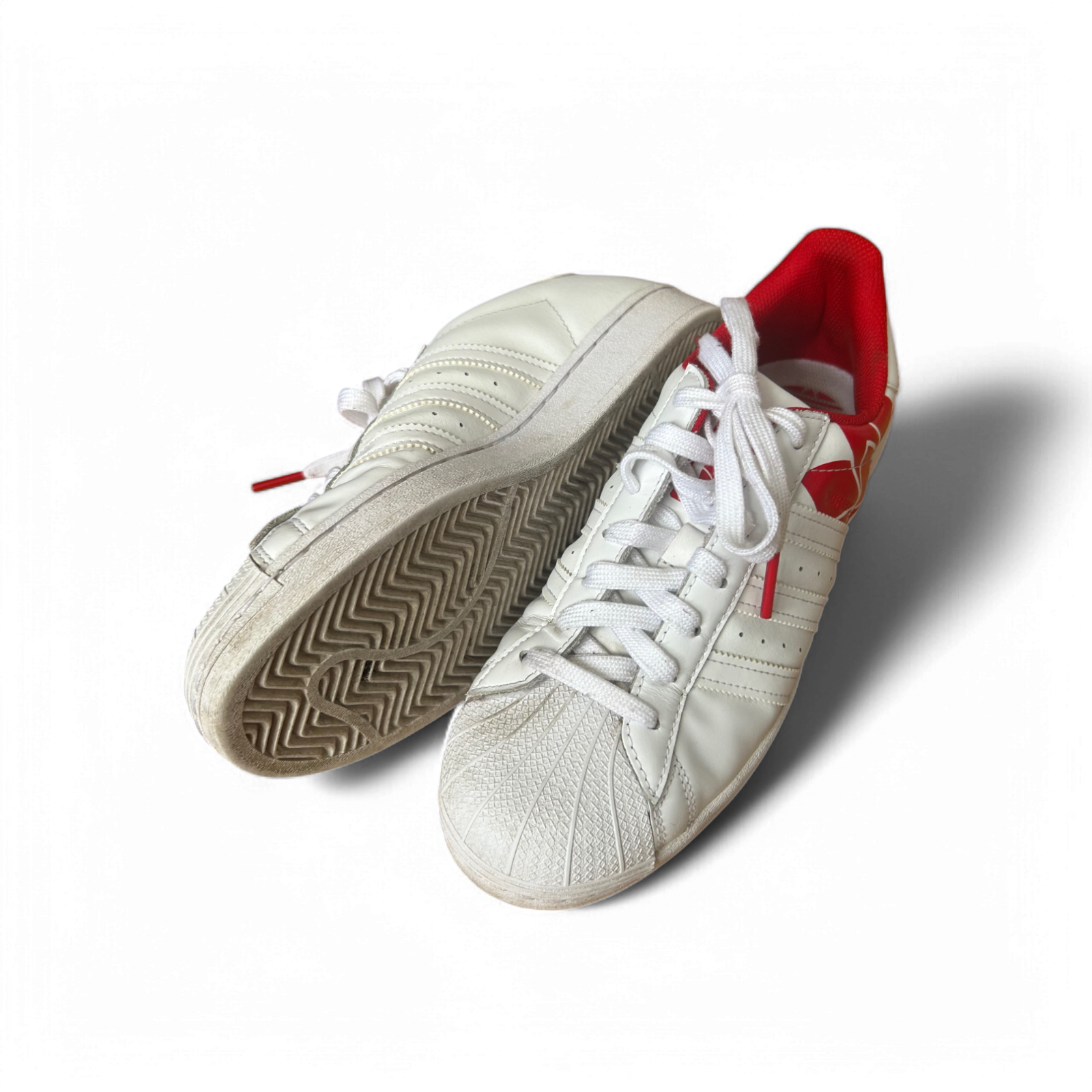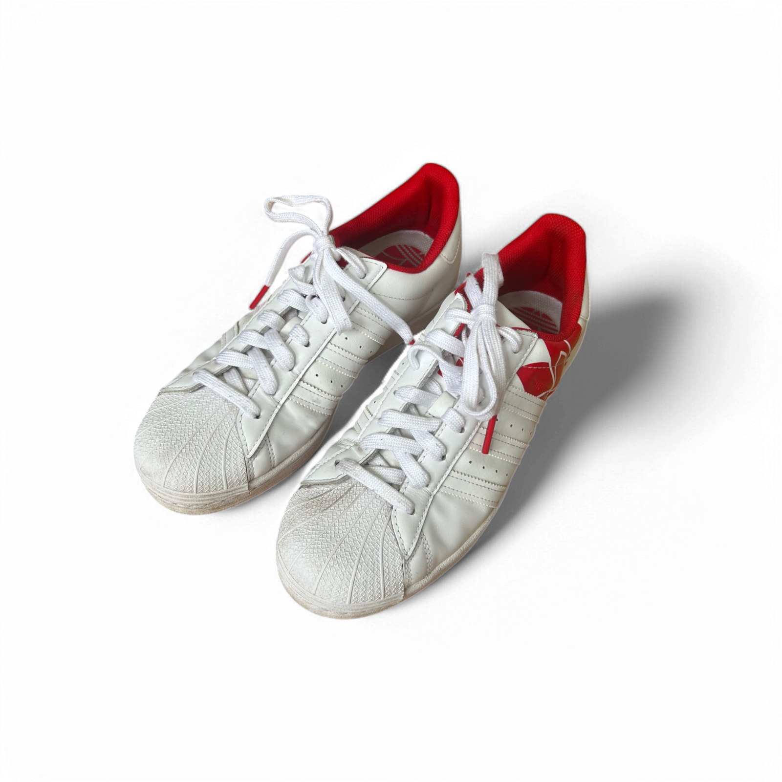 Klassische adidas Sneaker in Weiß mit auffälligen roten Details und ikonischem Trefoil-Logo – ein echter Hingucker für sportliche Streetstyles. Die Schuhe in Größe 42 bieten dank des gepolsterten Innenfutters und der robusten Shell-Toe-Form hohen Tragekomfort und Stabilität. Sie haben sichtbare Gebrauchsspuren, befinden sich aber in gutem Zustand. Perfekt für Frühling, Sommer oder Herbst – ob in der Freizeit, auf dem Festival oder beim Stadtbummel 🏙️👟