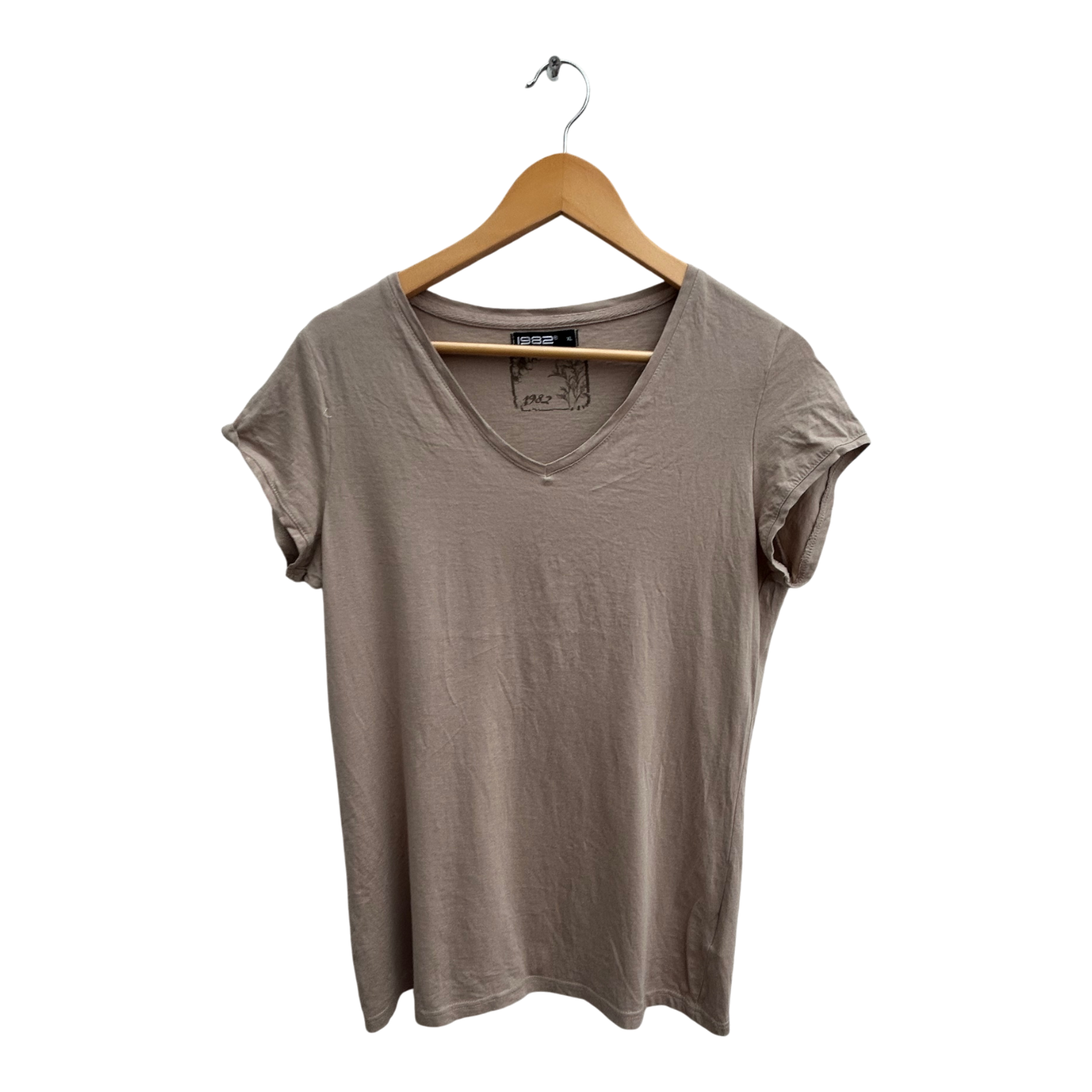 1982 Shirt Damen Gr XL Beige Baumwolle Kurzarm V-Ausschnitt Basic Casual