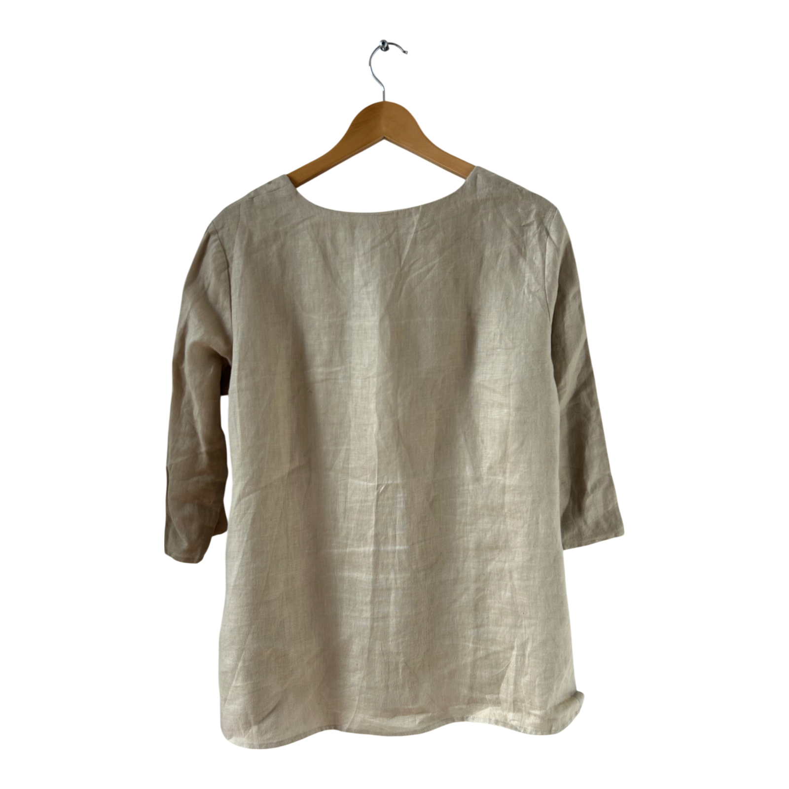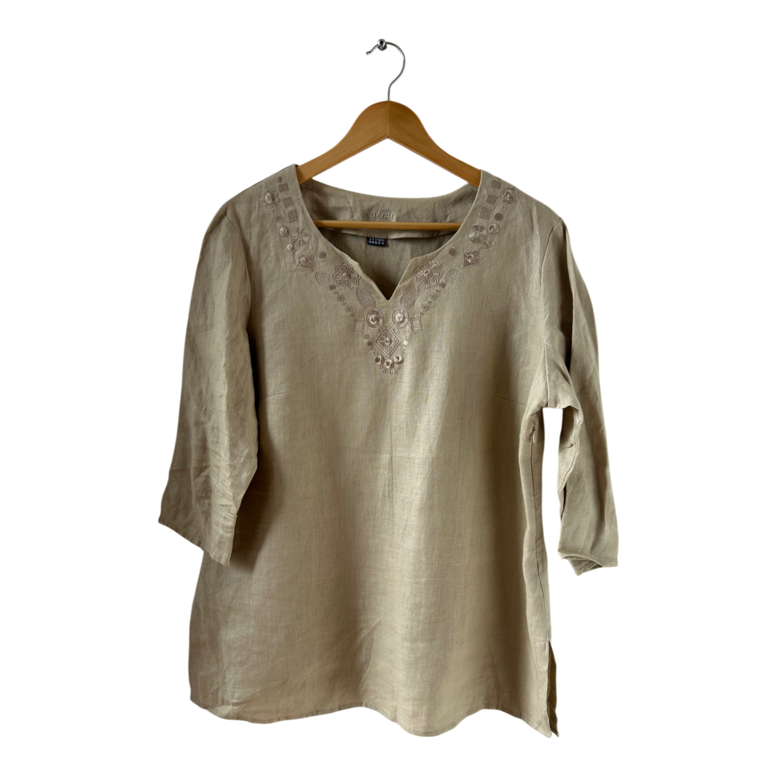 Adagio Tunika Leinen Gr 44 Natur Stickerei 3/4 Arm Sommerbluse hochwertig