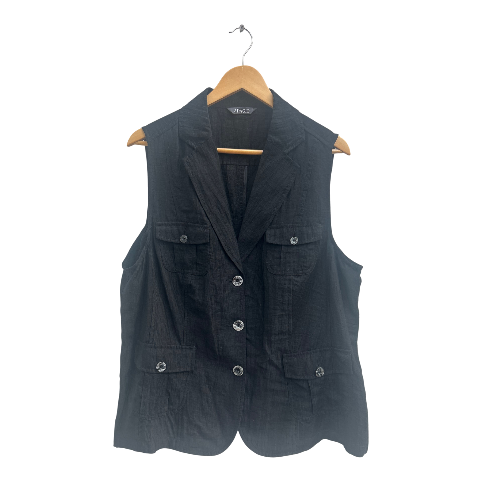 Adagio Weste Damen Gr 48 Schwarz Leinen Viskose Sommer Elegant Knöpfe