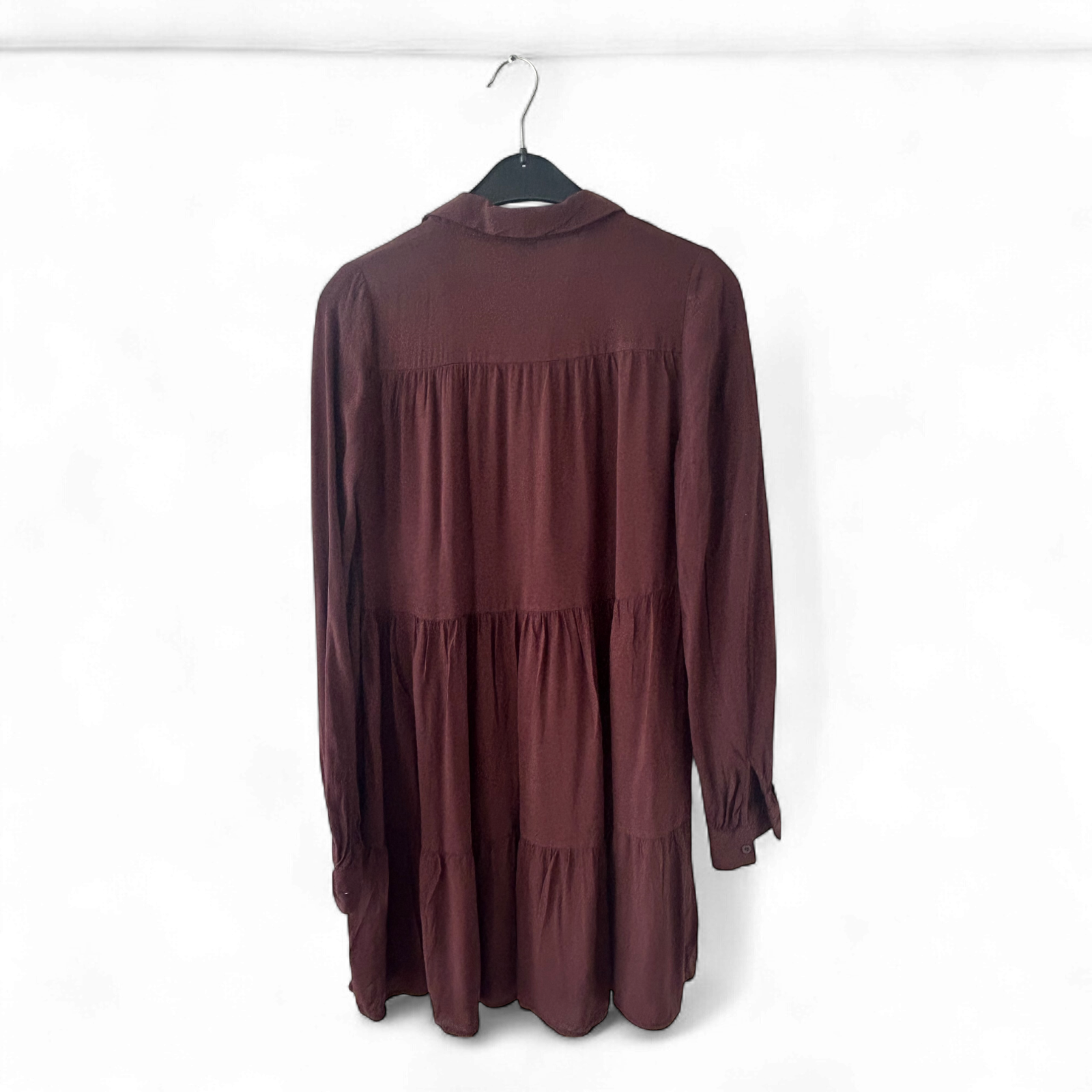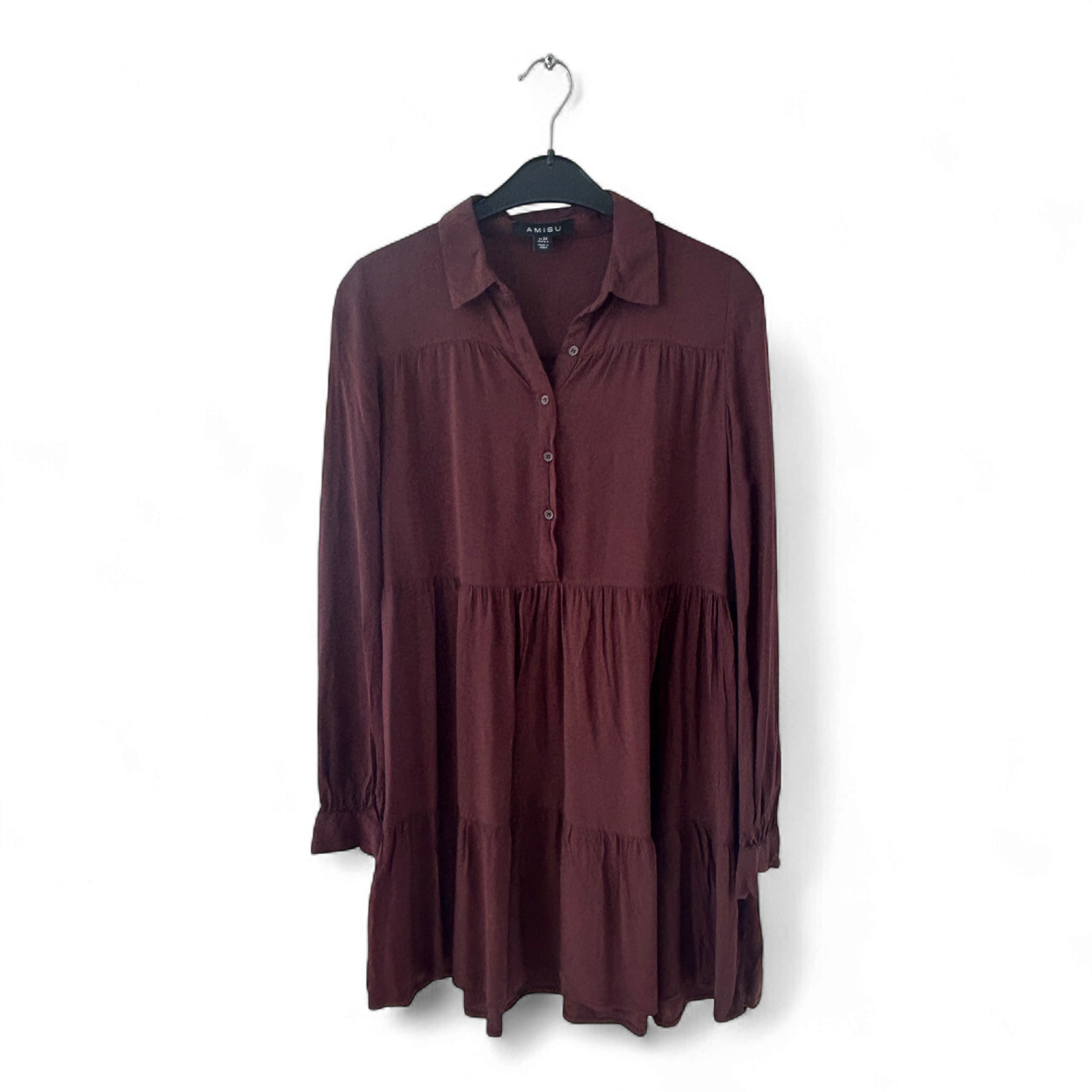 Amisu Kleid Damen Dress Damenkleid Gr. 34 Braun Tunika Langarm Viskose Modisch