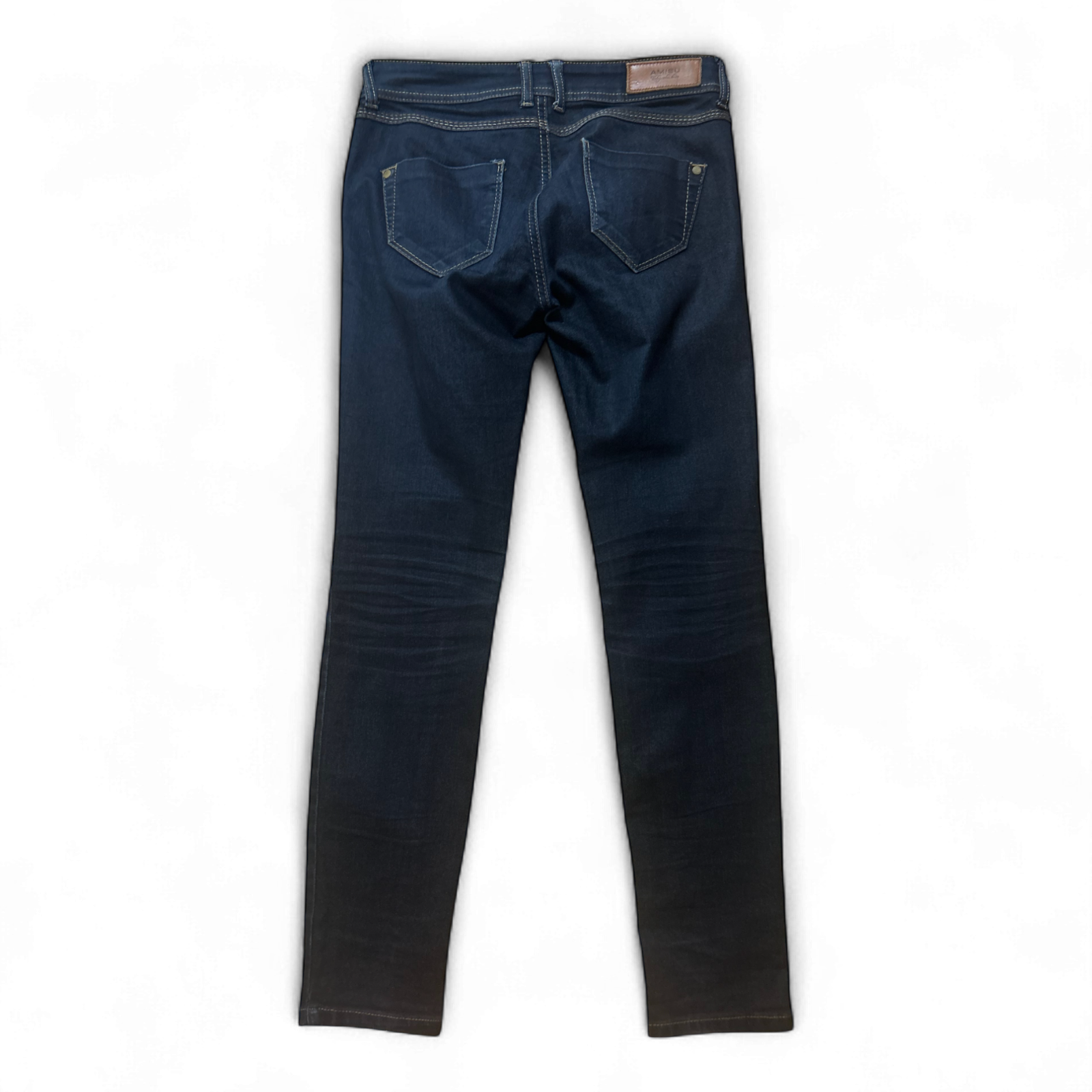Dunkelblaue Skinny Jeans von Amisu in Größe W28 L30 mit figurbetontem Schnitt und Stretchanteil. Die Hose hat eine Beinlänge von ca. 96 cm und eine Schrittlänge von ca. 74 cm. Das Material aus 80 % Baumwolle, 18 % Polyester und 2 % Elasthan bietet angenehmen Tragekomfort. Ideal für Alltag, Freizeit oder Büro – klassisch, schlicht, kombinierfreudig.
