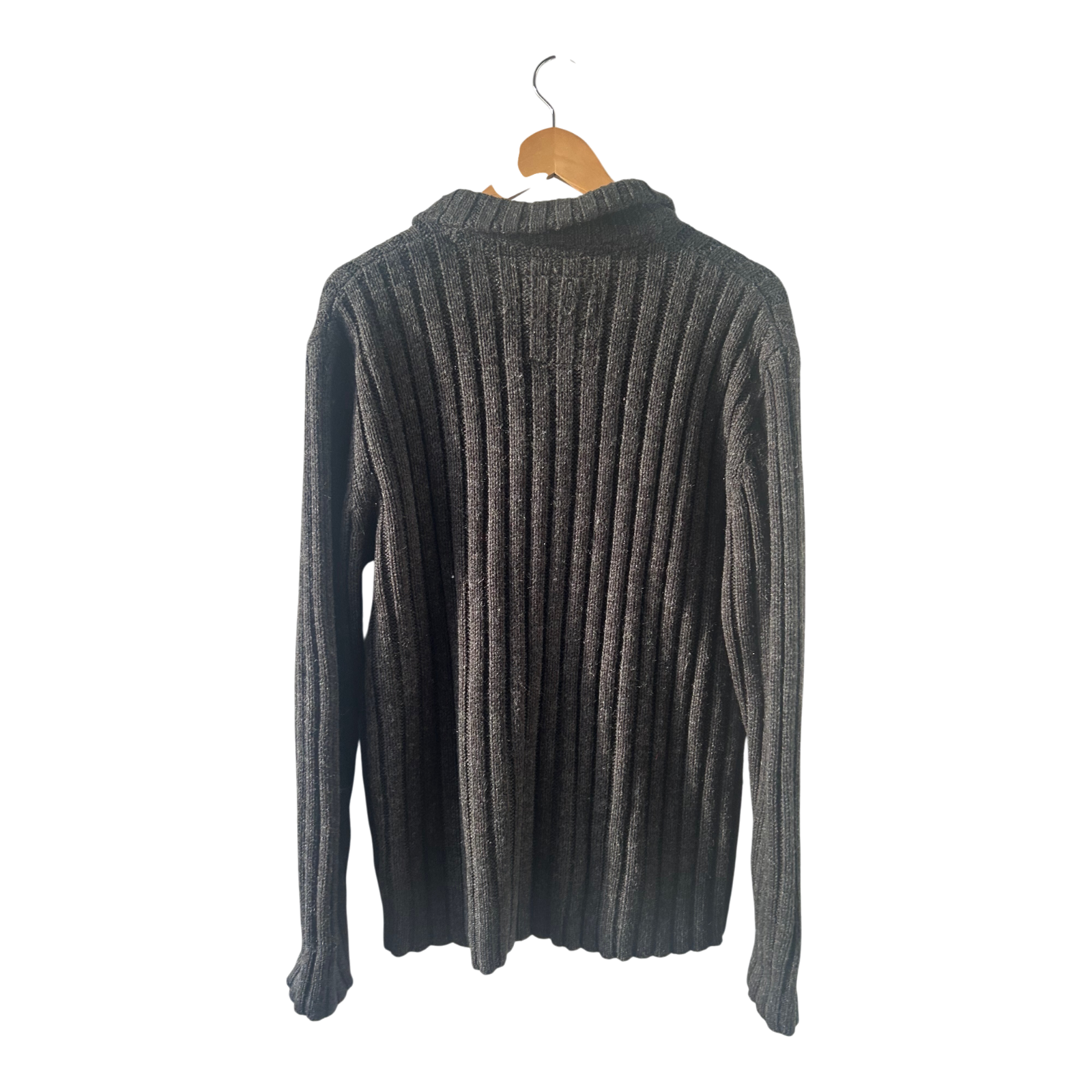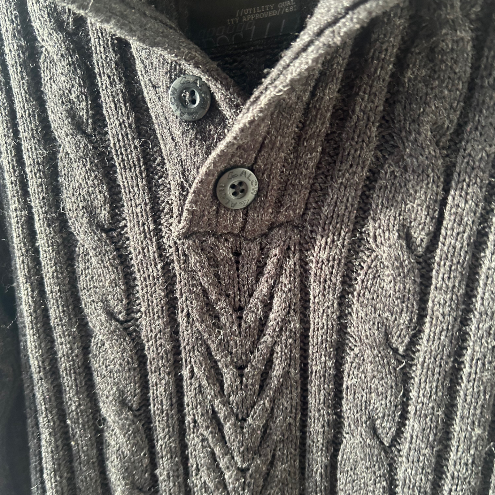 Ein hochwertiger grauer Strickpullover von Angelo Litrico in Größe XL mit klassischem Zopfmuster und modernem Kragen mit zwei Knöpfen. Der Pullover wirkt durch die Struktur und die kräftige Strickart warm, maskulin und zeitlos und passt perfekt für die kältere Jahreszeit ❄️. Die Brustweite beträgt ca. 58 cm, die Länge rund 70 cm und die Ärmellänge etwa 68 cm. Das Materialgefühl ist weich und leicht robust, typisch für einen Mix aus Acryl und Wolle. Das Pflegeetikett nennt 86% Acryl und 14% Wolle. Ein stilvoller Strickklassiker für Freizeit und Alltag ✨.