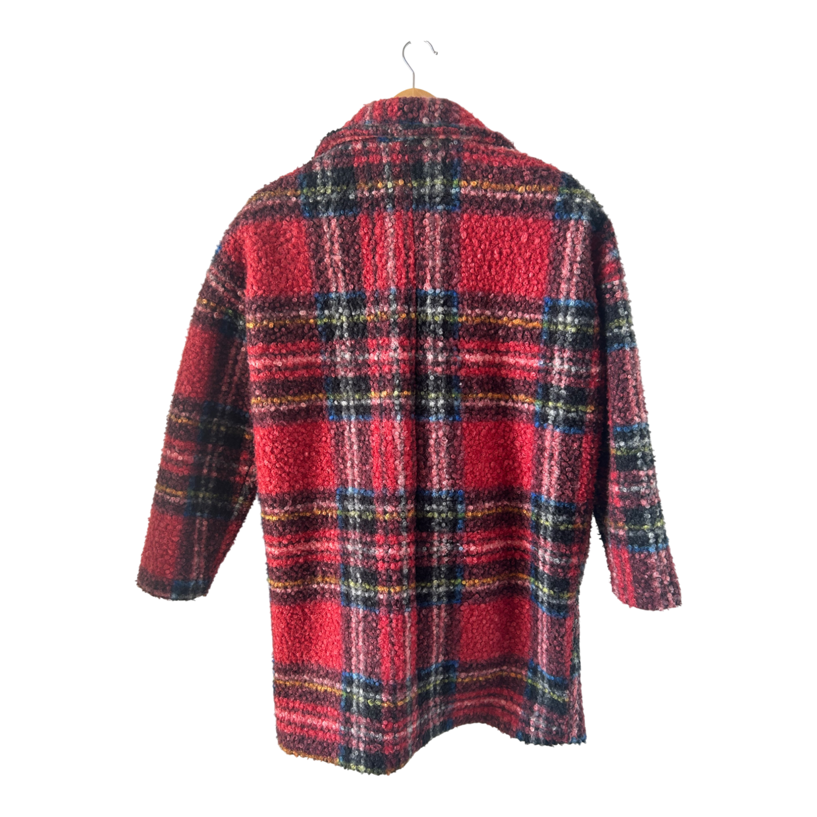 Baci di Zucchero Mantel Damen M Rot Kariert Schulterpolster Vintage Wolljacke