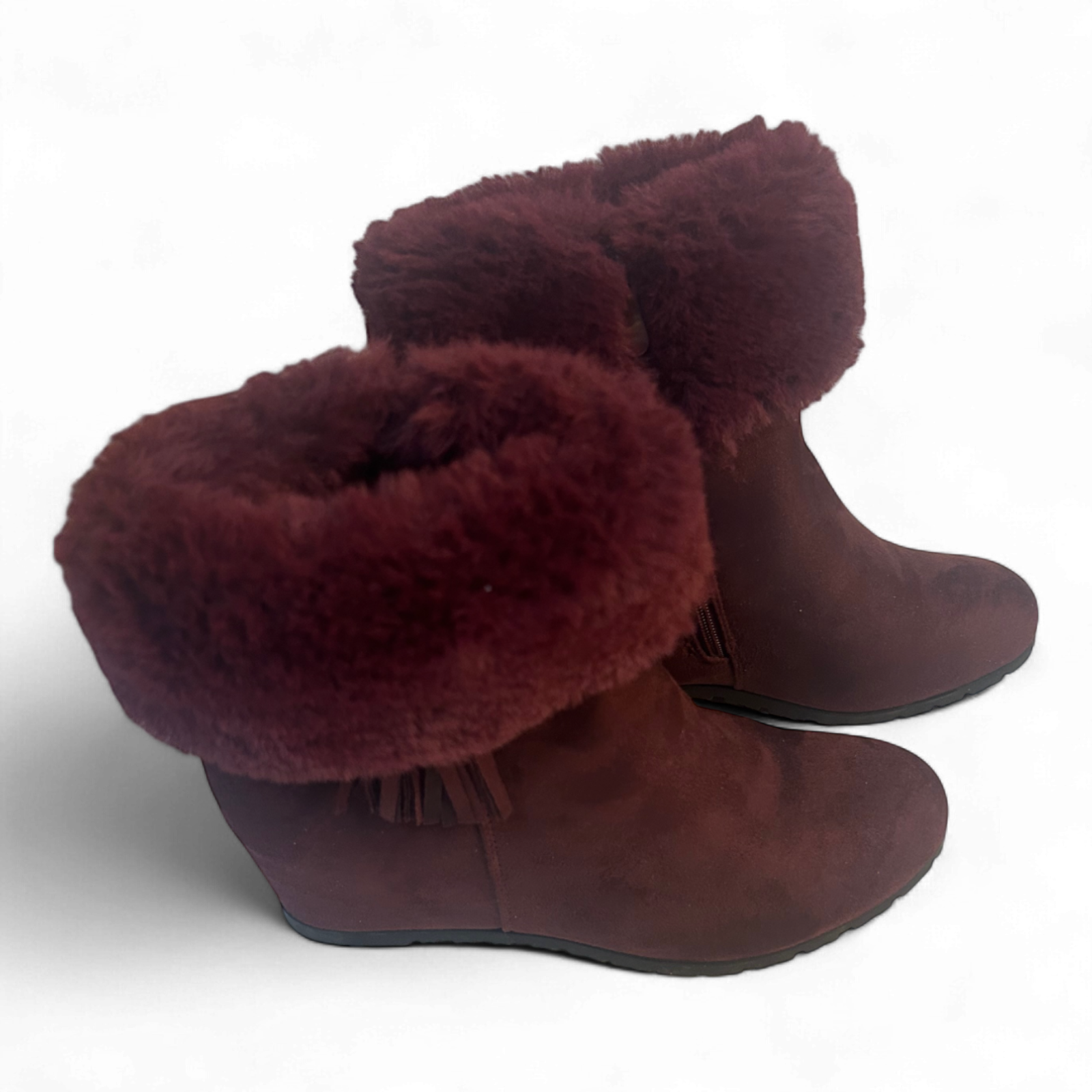 Bello Star Stiefeletten Gr 41 Bordeaux Keilabsatz Kunstfell Winter Warm Gefüttert