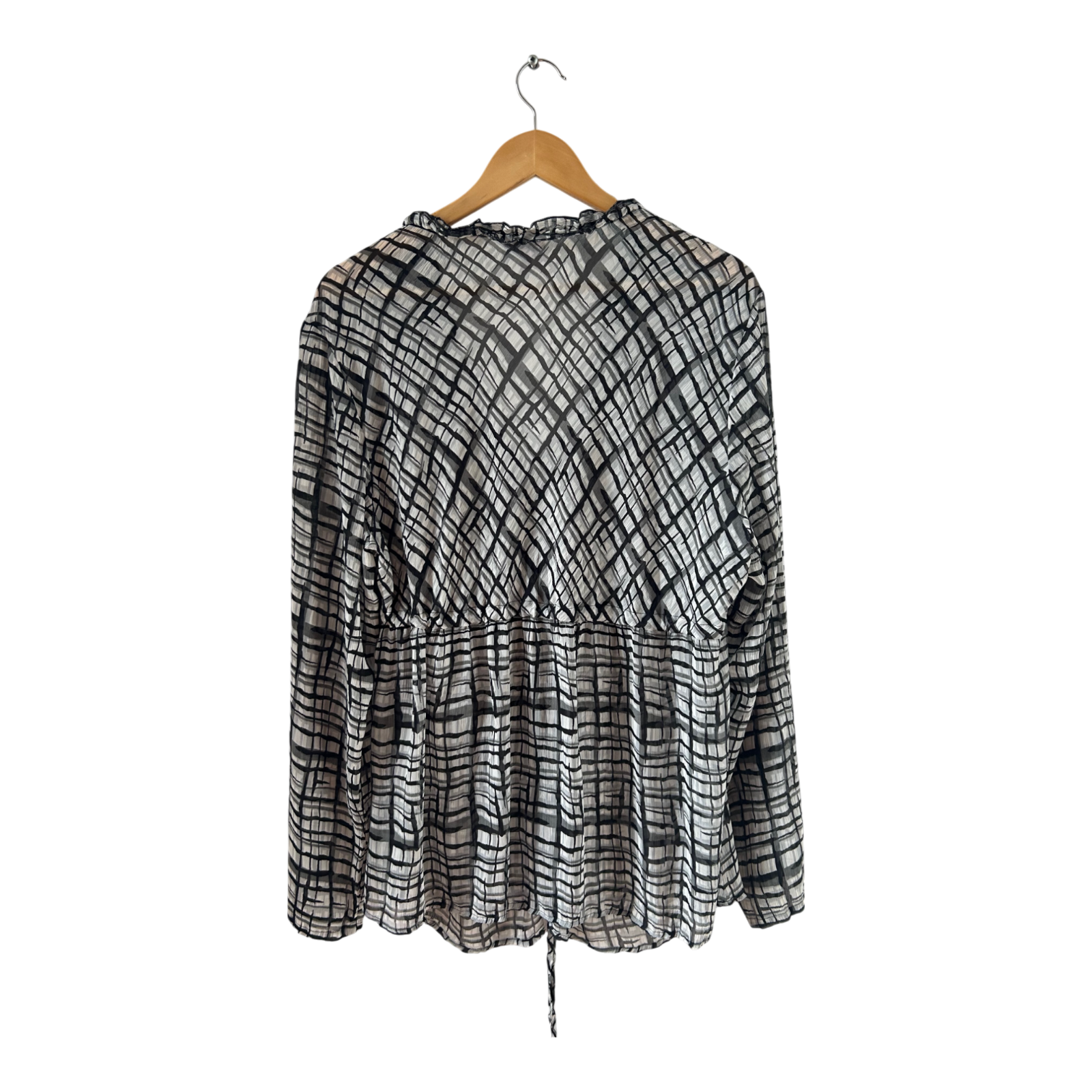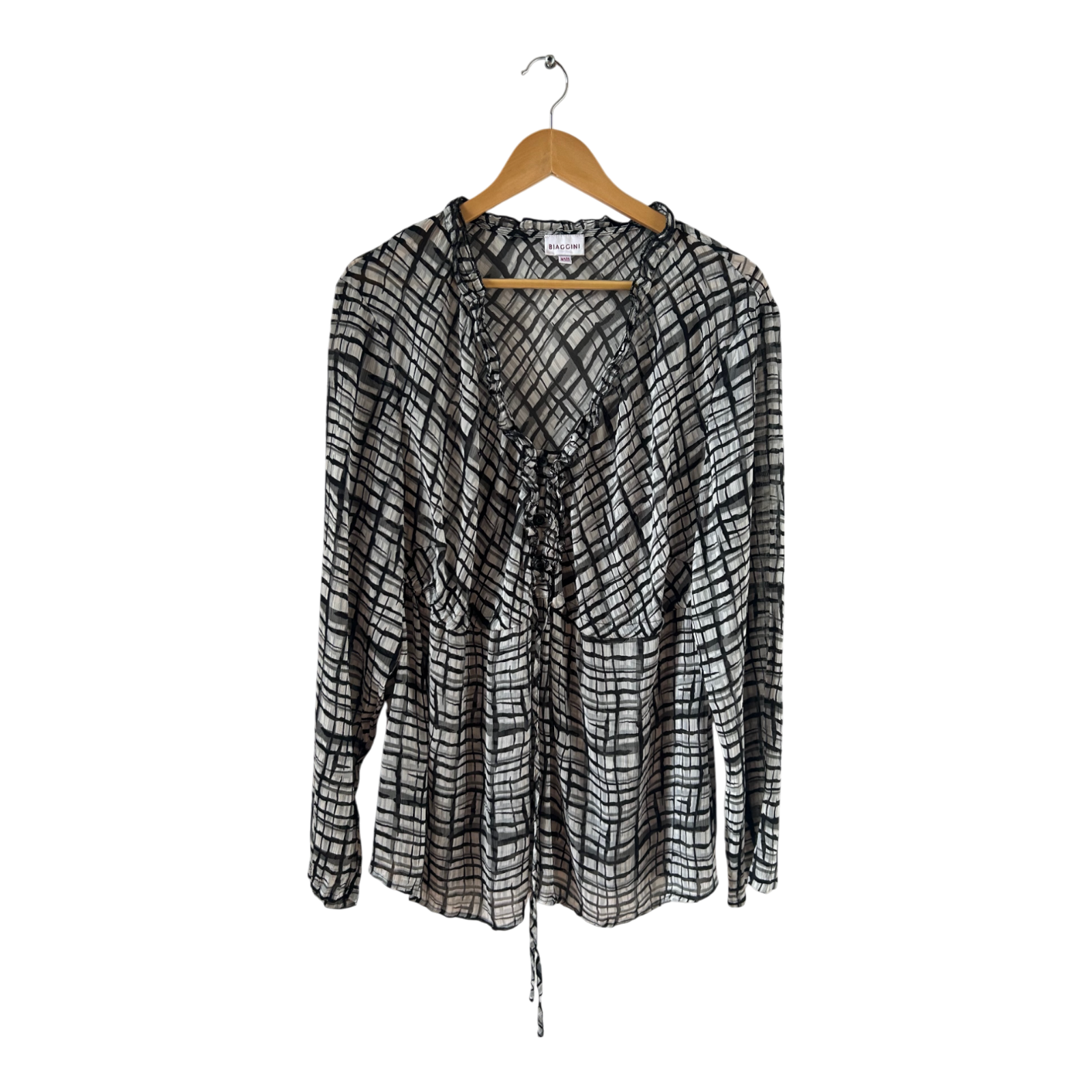 Biaggini Tunika Gr 48 Schwarz Weiß Muster Raffung V-Ausschnitt figurumspielend
