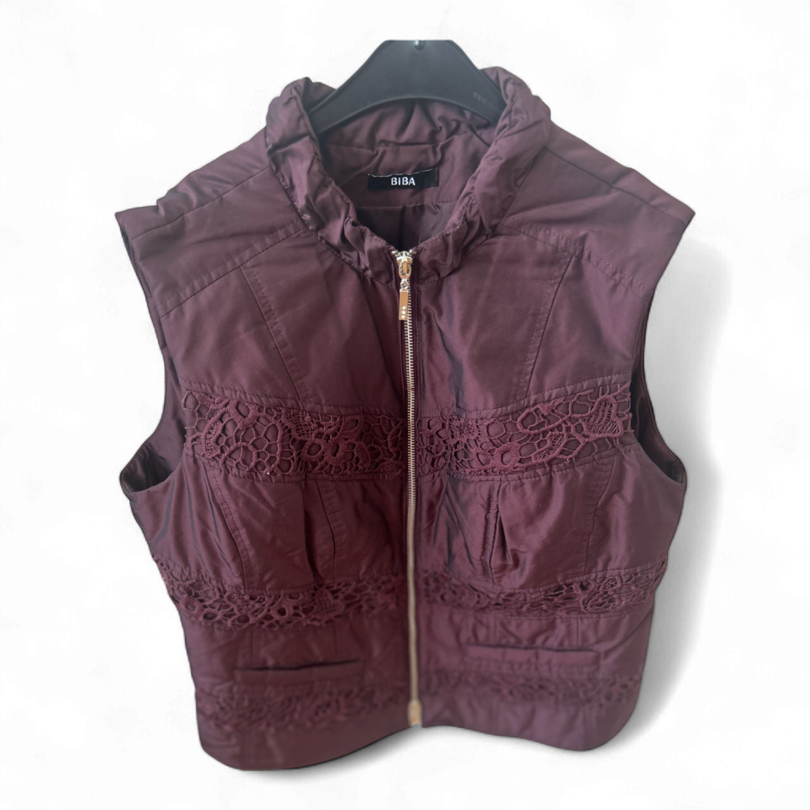 Biba Weste Weinrot Gr 42 Spitze Reißverschluss Elegant 100 % Polyester Damen