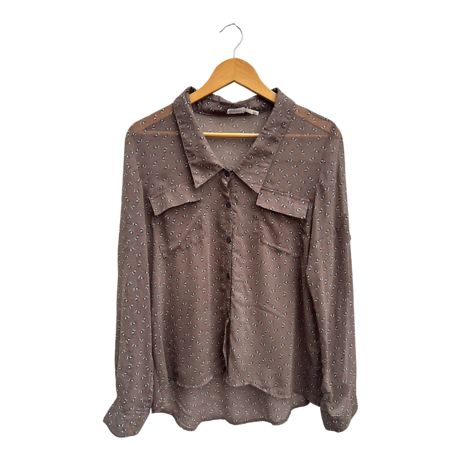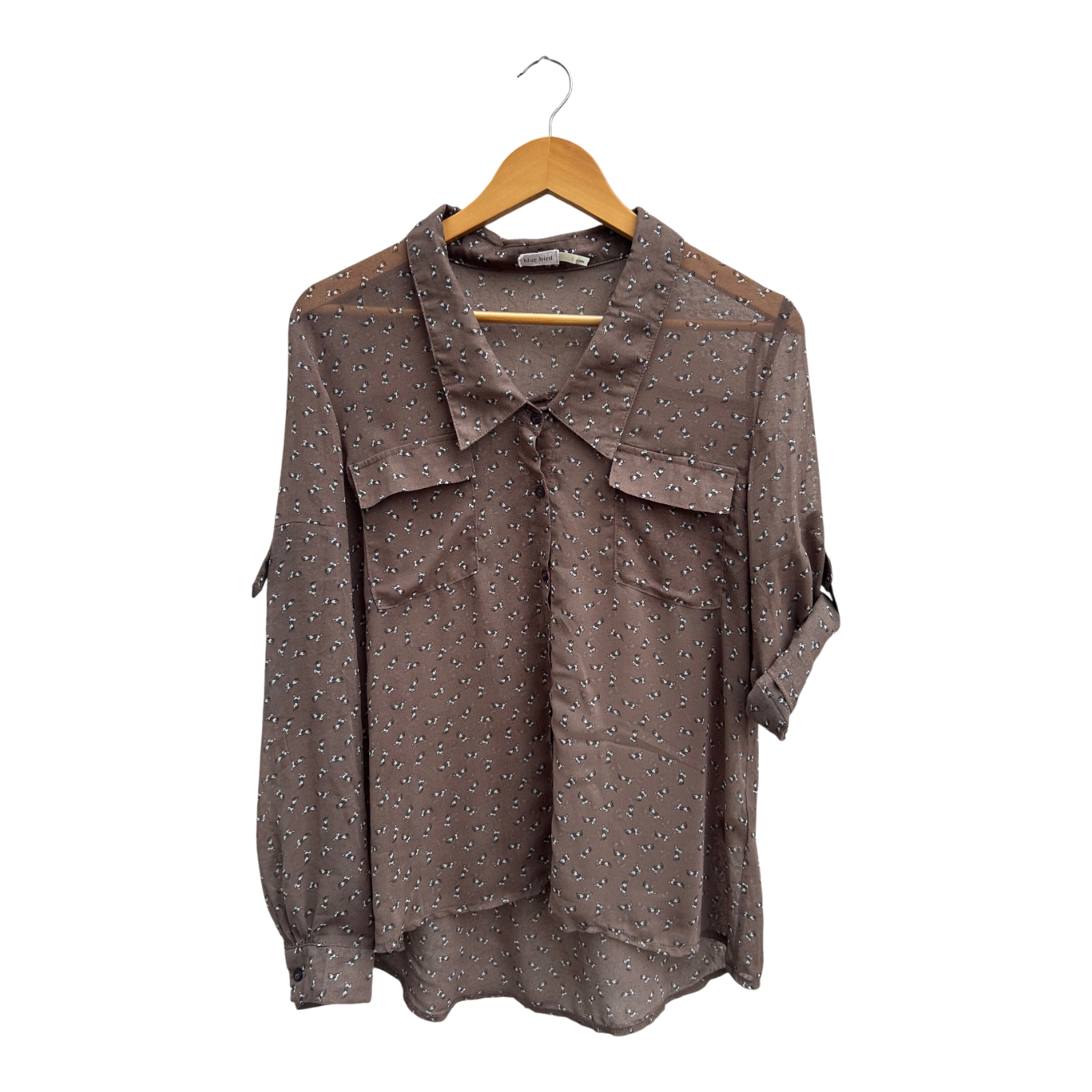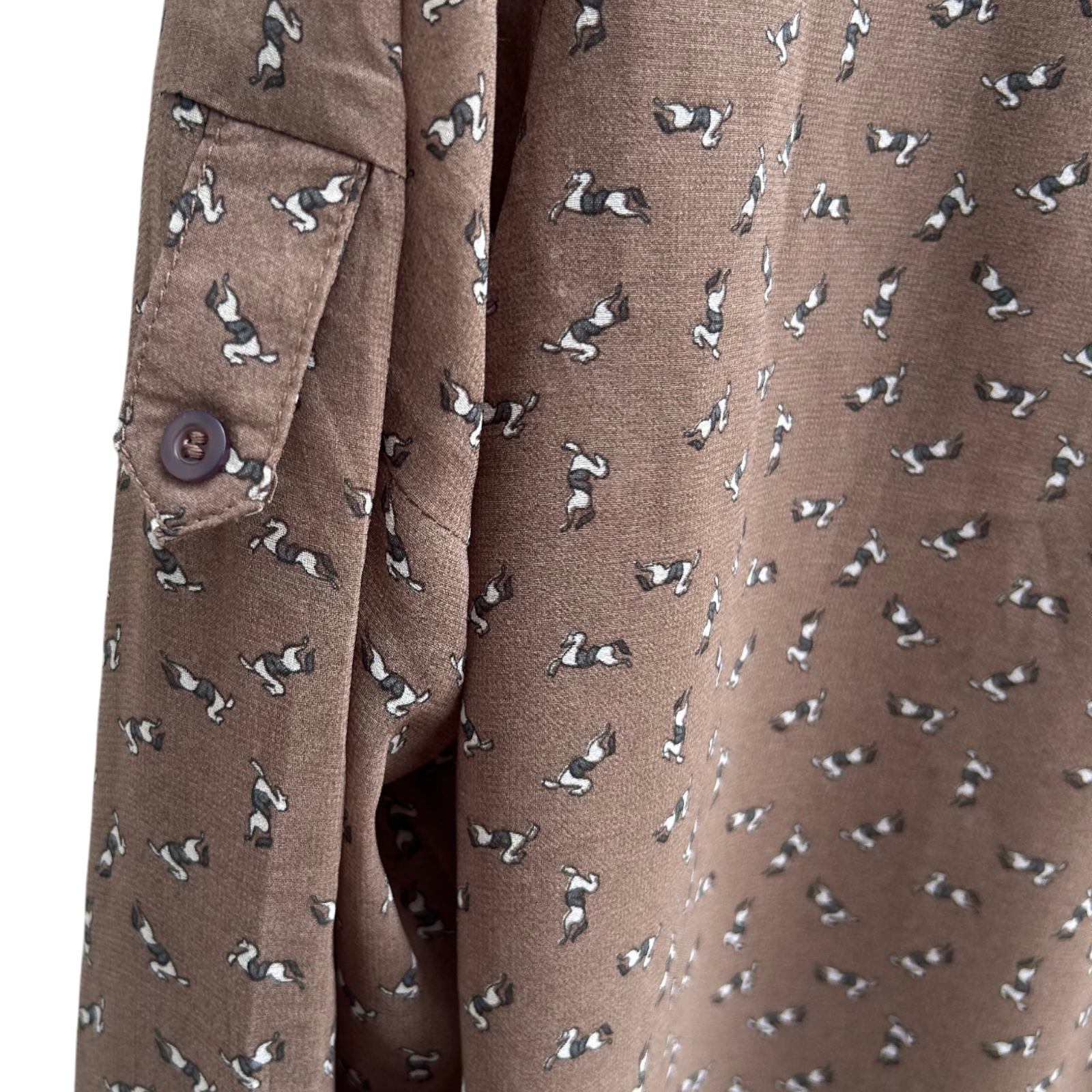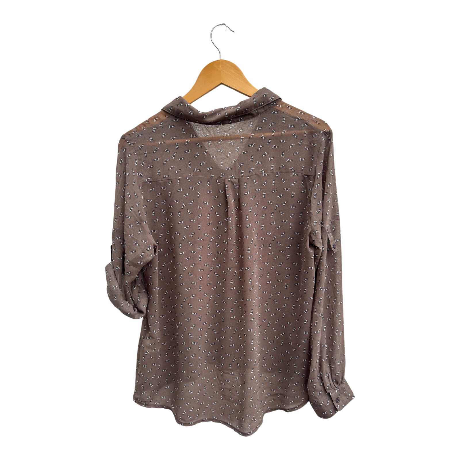 Blue Bird Bluse Damen Gr L Braun Transparent Krempelärmel 100% Polyester Pferde