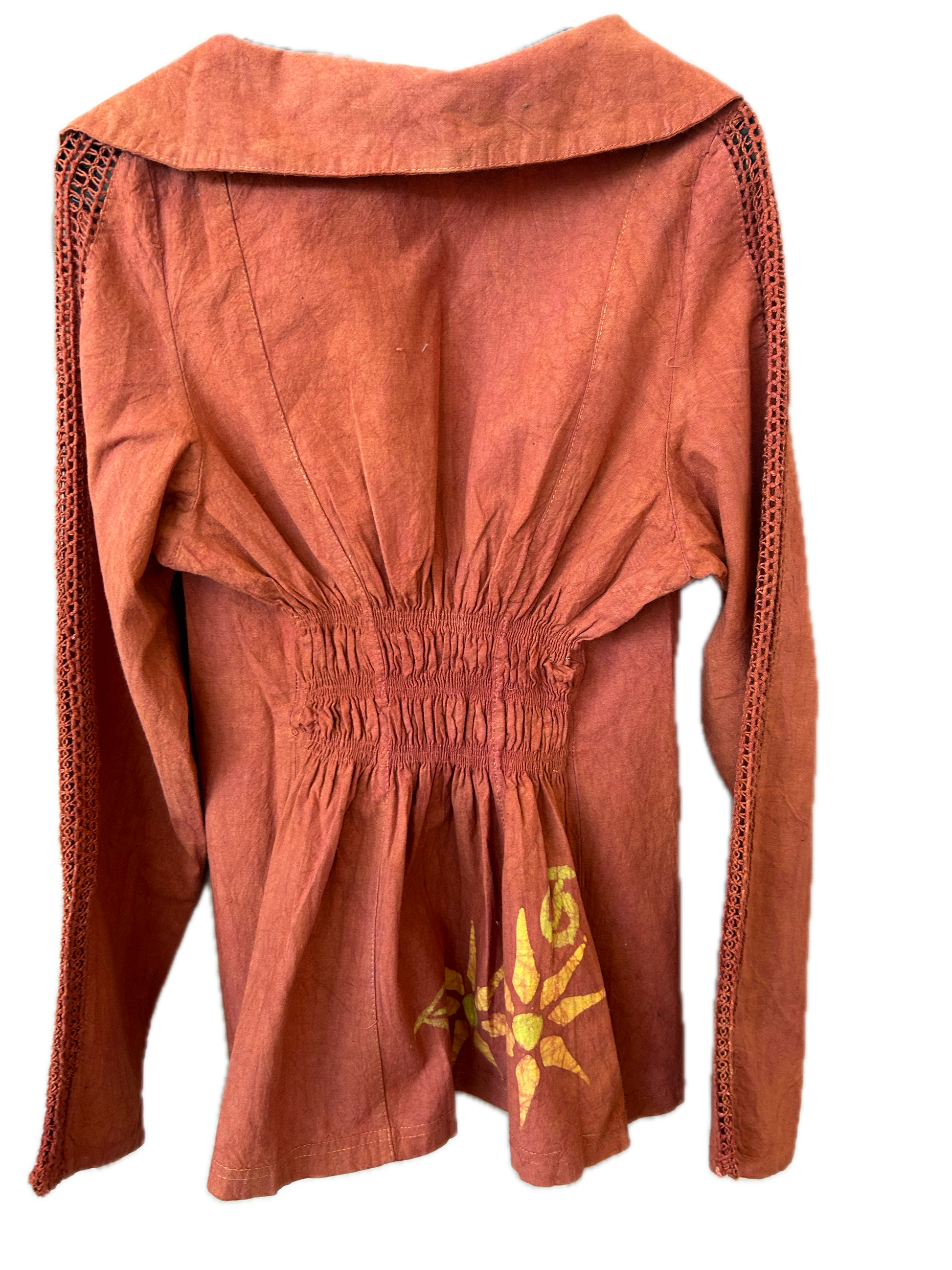 Die langärmlige Bluse in Größe S im Boho-Style präsentiert sich in einem fröhlichen Orangeton. Sie zeichnet sich durch lockere Passform und verspielte Details aus und eignet sich perfekt für lässige Looks.