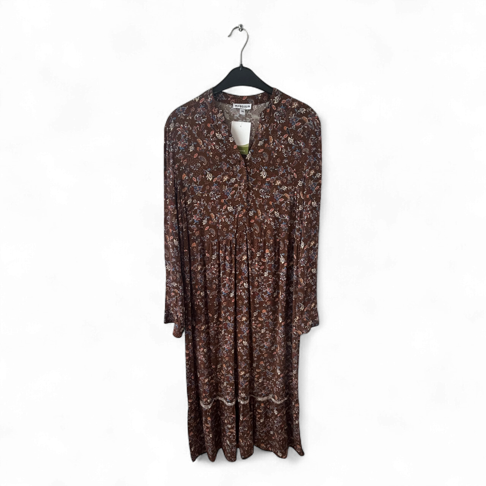 Manguun Kleid Damen Dress Damenkleid Gr. 36 Braun Viskose Langarm Floral Midi