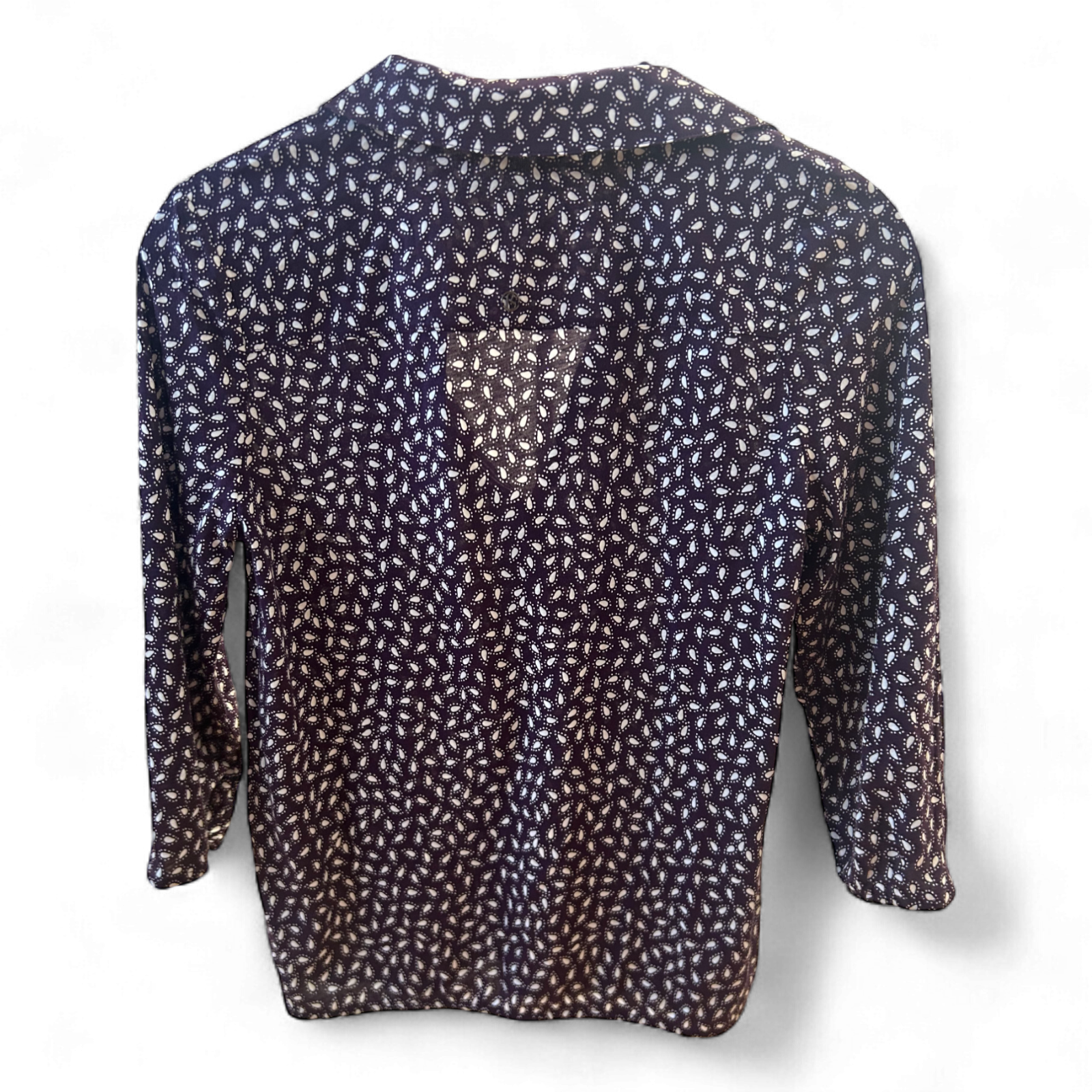 Bonita Bluse Violett Weiß S Muster Gummizug Baumwolle Modal Kragen