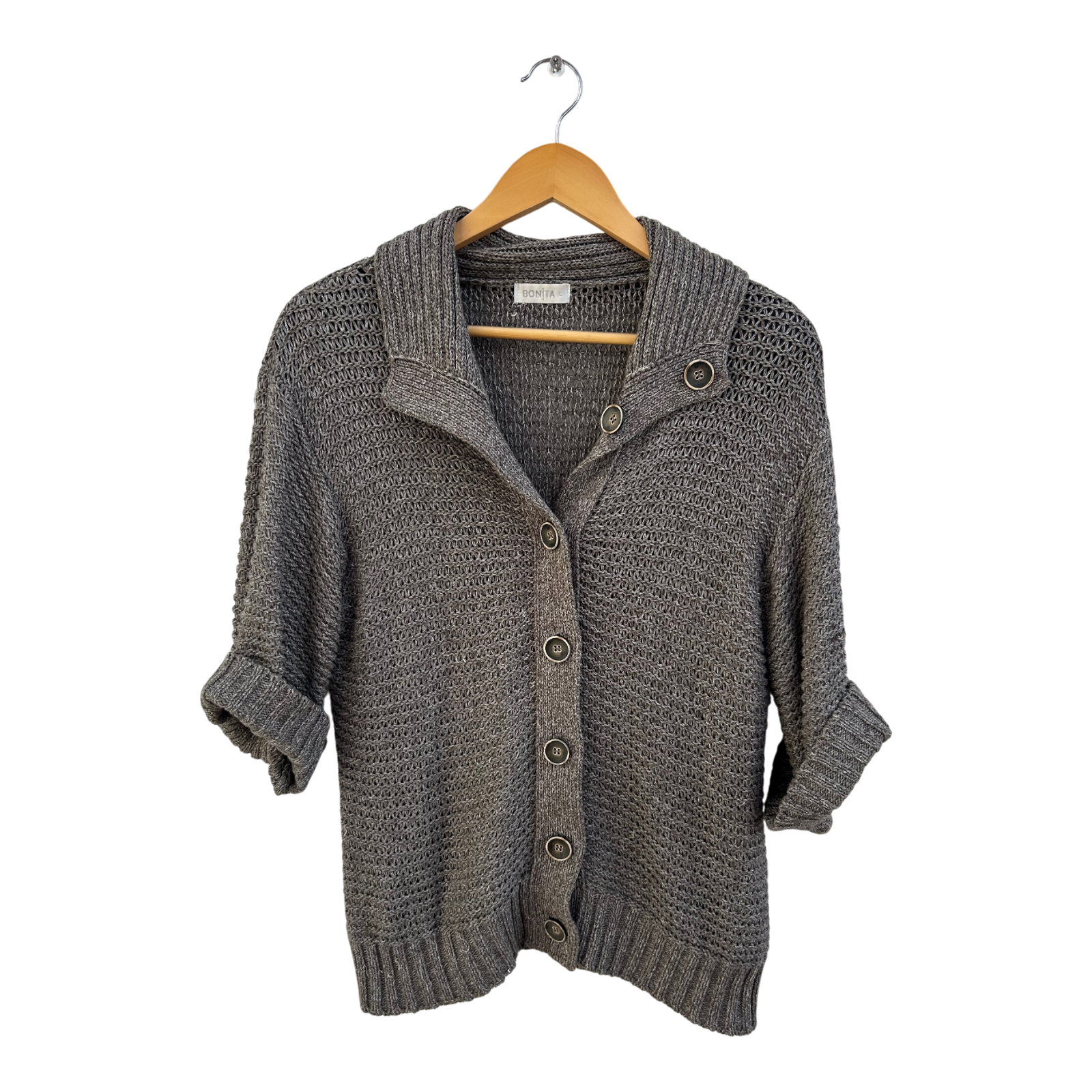 Bonita Strickjacke Damen Gr L Braun Kurzarm Baumwollmix Struktur Strick Elegant