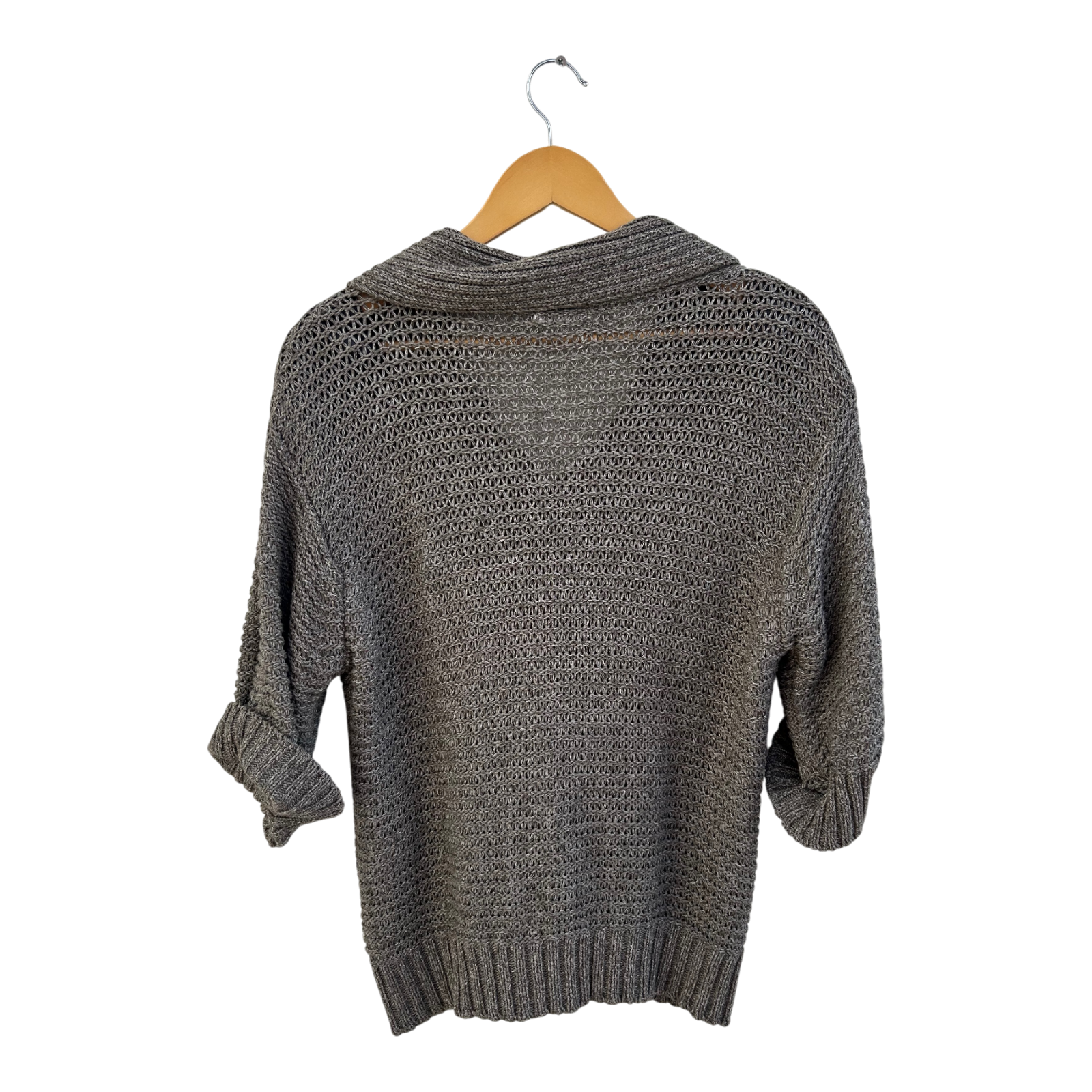 Das Modell überzeugt durch seine schwere, stabile Qualität aus 60 % Baumwolle und 40 % Polyester. Der strukturierte Strick sorgt für einen edlen Look, während die kurzen, krempelbaren Ärmel und der breite Kragen der Jacke eine moderne Note verleihen.