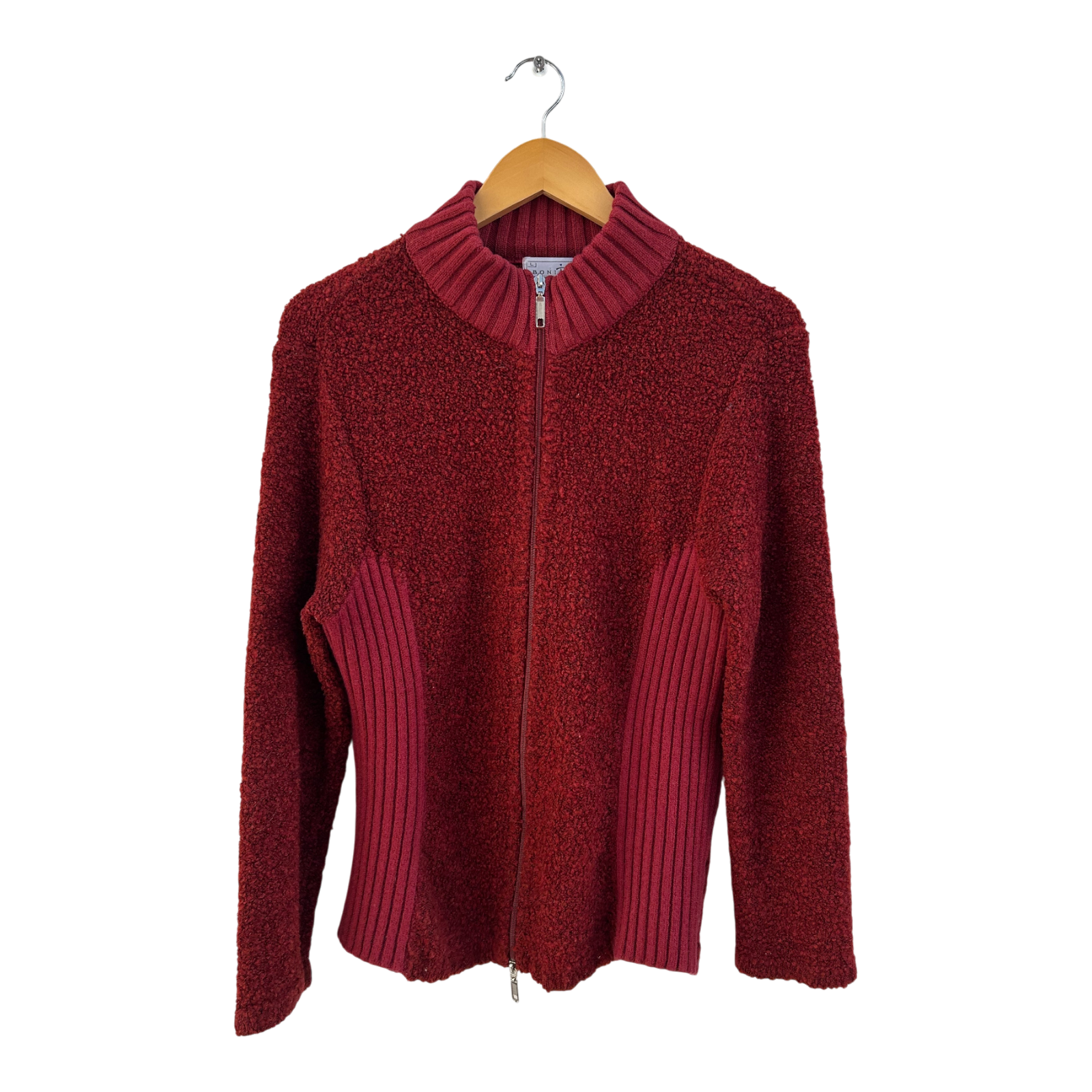 Bonita Strickjacke Damen Gr L Rot Wollmix Struktur Strick Reißverschluss Elegant