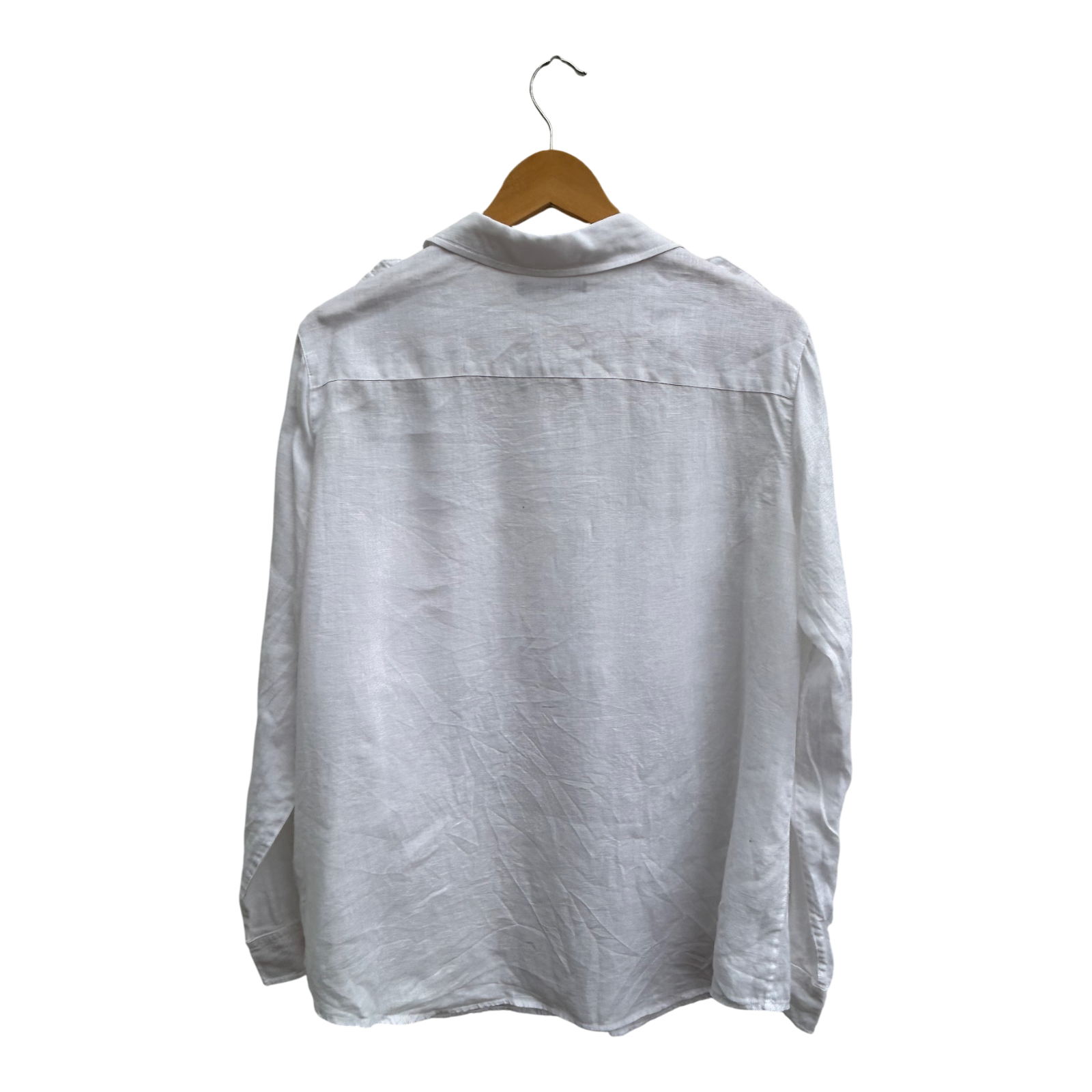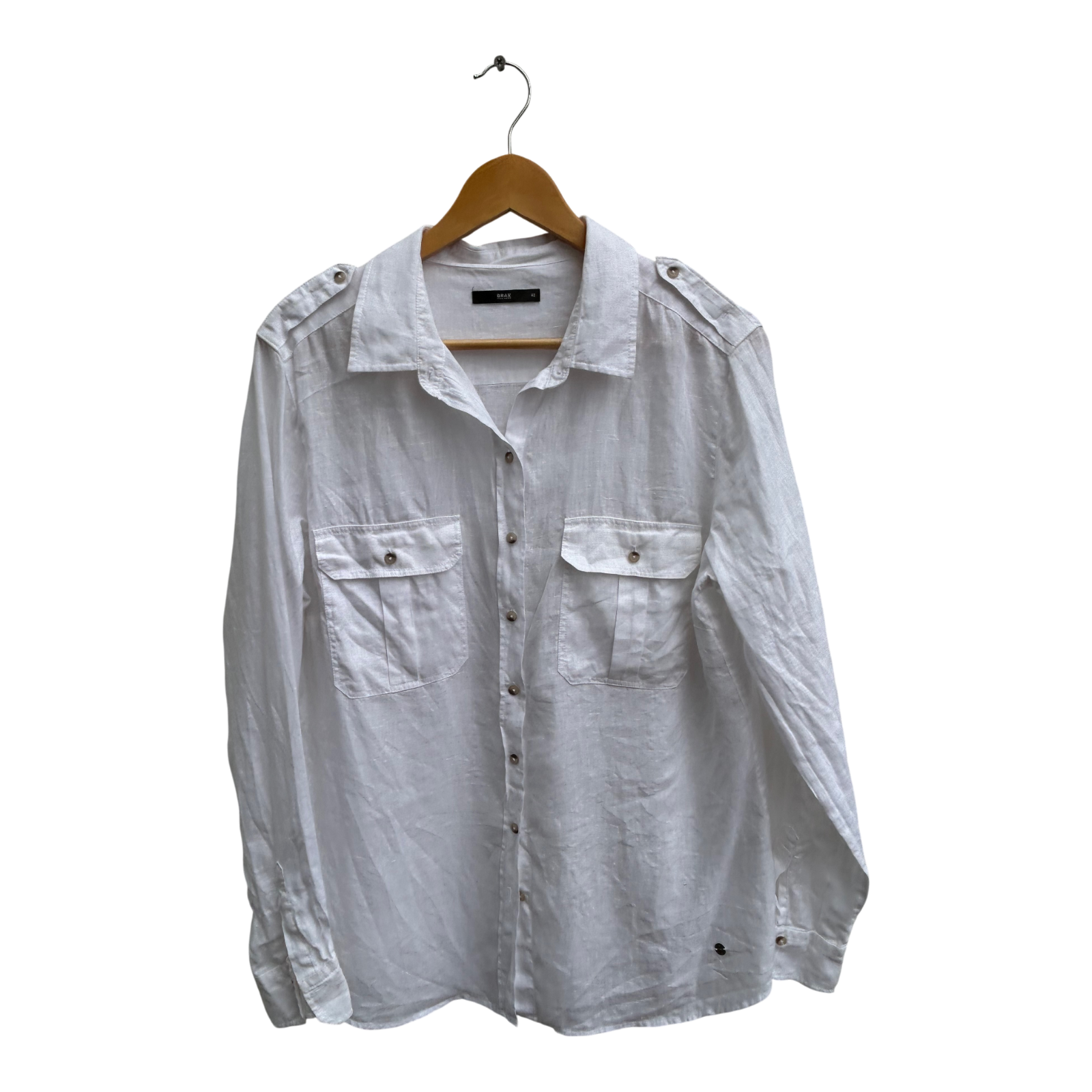 Brax Bluse Damen Gr 42 Weiß 100% Leinen Langarm Sommer Hemdbluse Elegant Klassisch