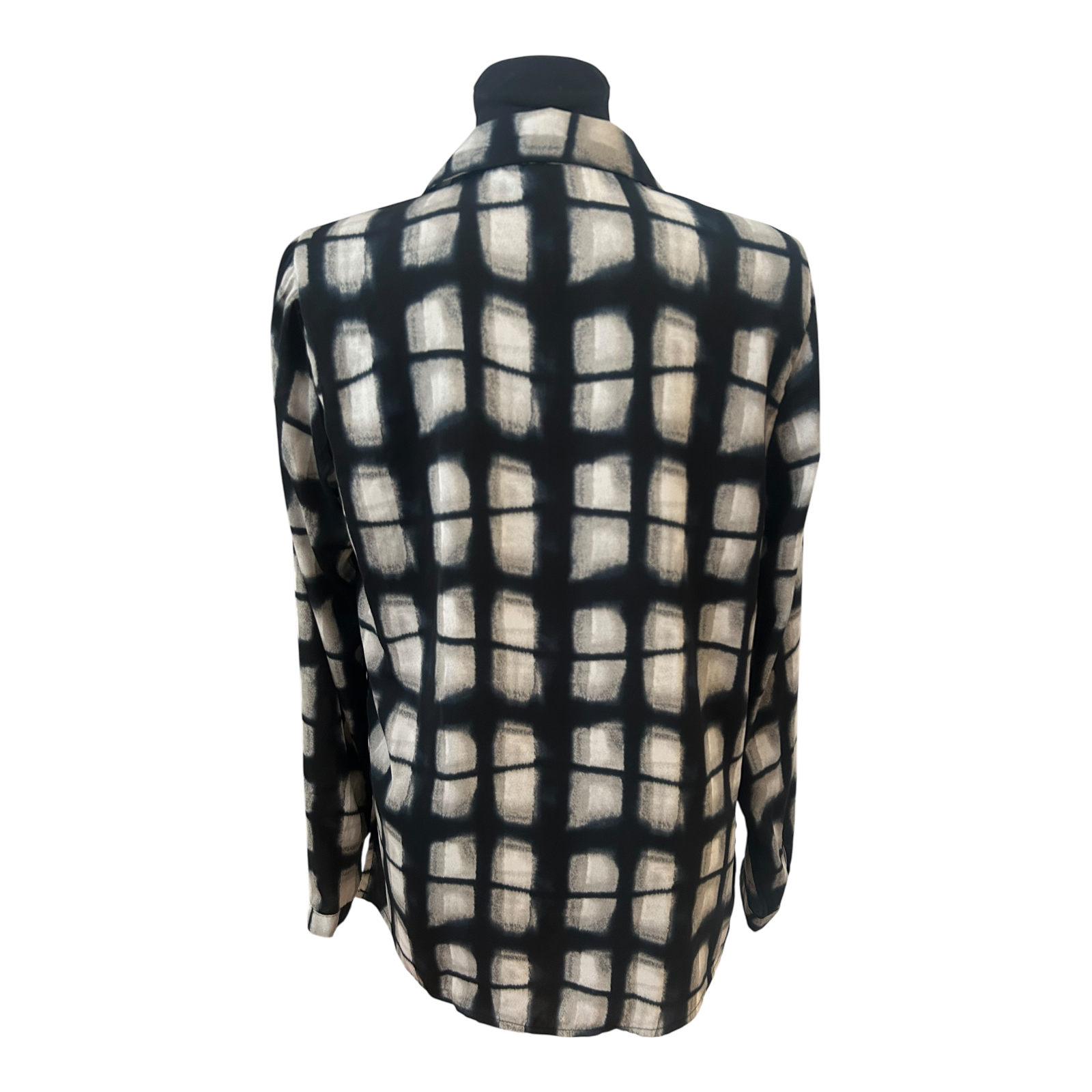 Allover-Muster und wirkt durch das weiche, fließende Material besonders angenehm zu tragen ✨ Sie hat eine verdeckte Knopfleiste, einen klassischen Kragen und lange Ärmel mit einer Ärmellänge von ca. 64 cm.