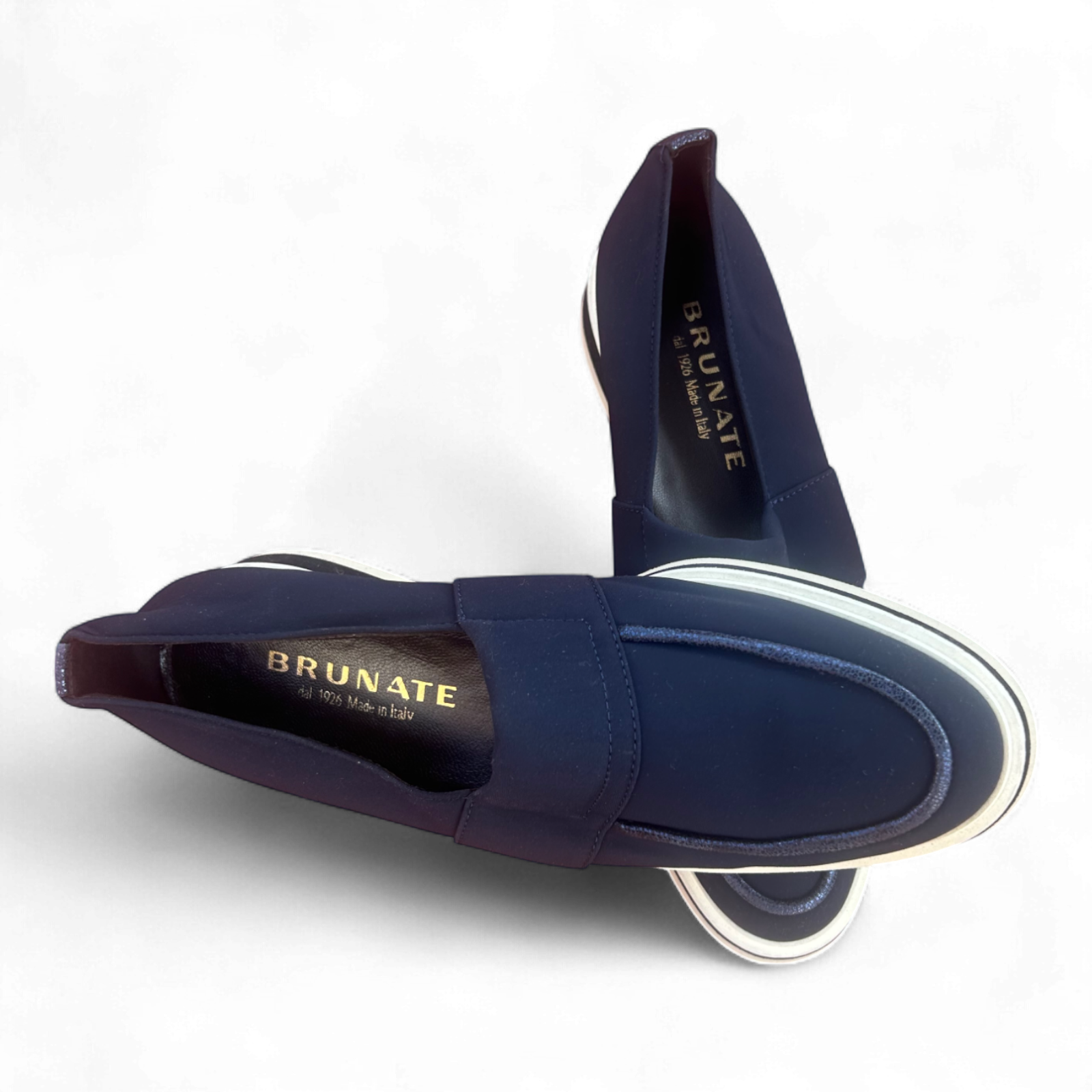 Brunate Loafer Blau 39,5 Made in Italy mit weißer Sohle Slipper edel