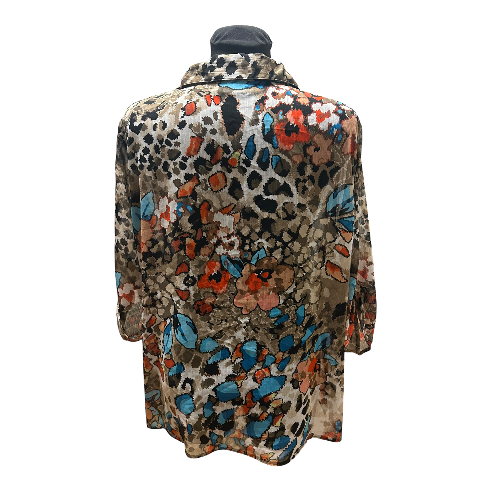 C&A Bluse Damen Gr 50 Braun Blau Rot Muster 3/4 Arm Transparent Elegant