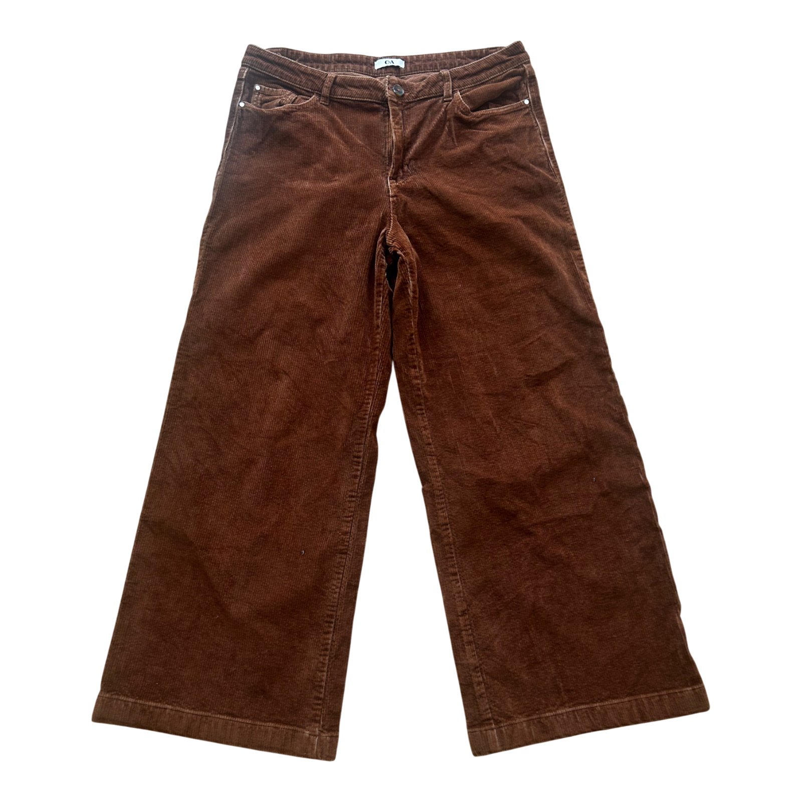 C&A Damen Cordhose Gr 42 Braun Weit Ausgestellt Kurze Länge Baumwolle Elegant