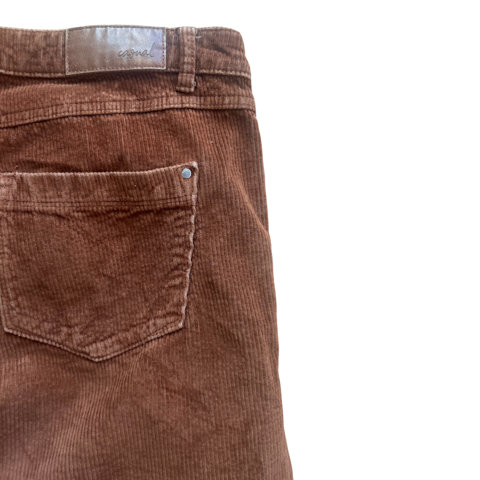 Diese Damen-Cordhose von C&A in Größe 42 überzeugt durch ihren weiten, geraden Schnitt und die angenehm weiche Cordqualität. Der Stoff besteht aus 98 % Baumwolle mit 2 % Elasthan und trägt sich dadurch komfortabel mit leichter Bewegungsfreiheit. Durch die sehr kurze Schrittlänge wirkt die Hose bewusst verkürzt und eignet sich ideal als 7/8-Länge oder für kleinere Frauen. Die braune Farbe lässt sich vielseitig kombinieren. Die Bundweite beträgt ca. 43 cm, die Gesamtlänge ca. 97 cm und die Schrittlänge ca. 68 cm. 👖✨