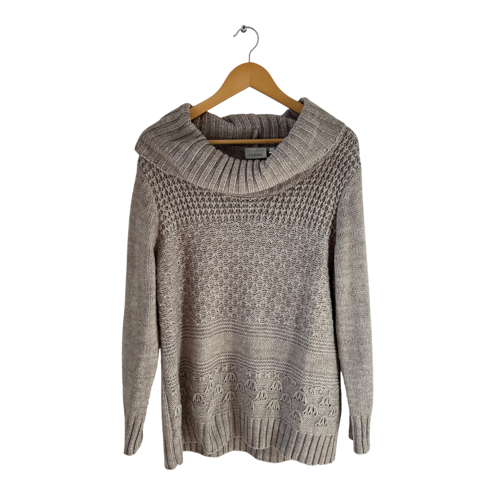 C&A Pullover Damen Gr XL Beige Strick Muster Rollkragen Elegant Weich Winter