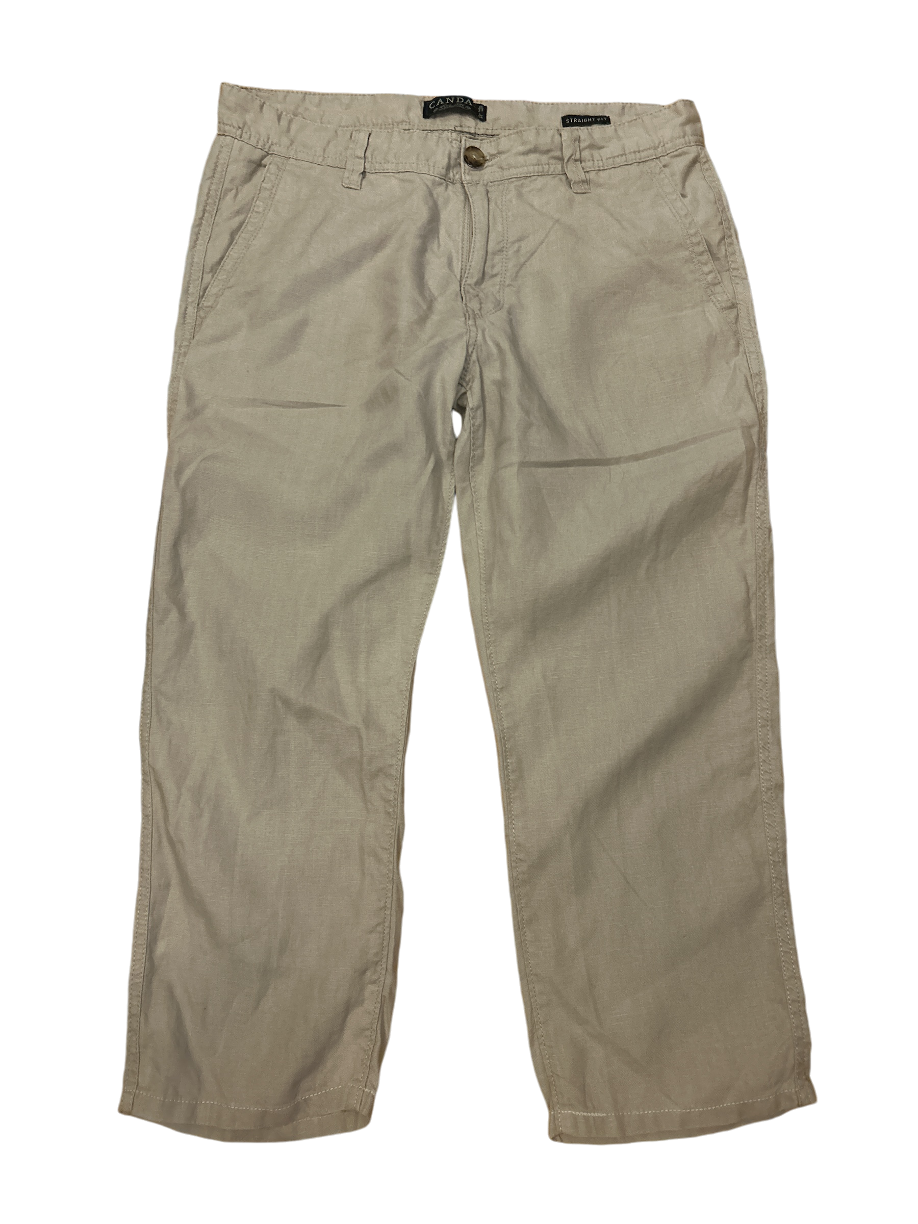 CANDA Damenhose dreiviertel Leinen straight fit beige Größe 42