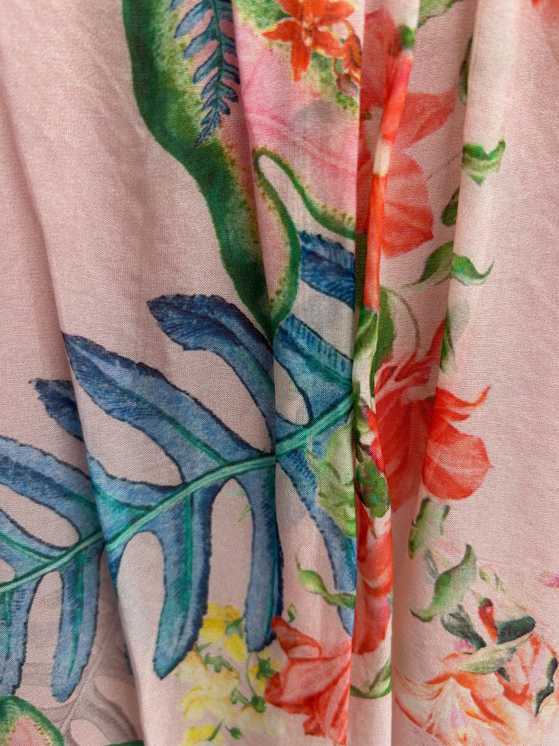 Cartoon Kleid Damen Dress Damenkleid Gr 40 Rosa Blumen Sommer Seide Viskose Boho