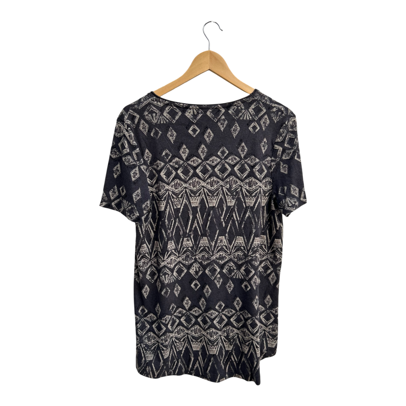 Cecil Shirt Damen Gr XL Grau Baumwolle Kurzarm Rundhals Muster Casual