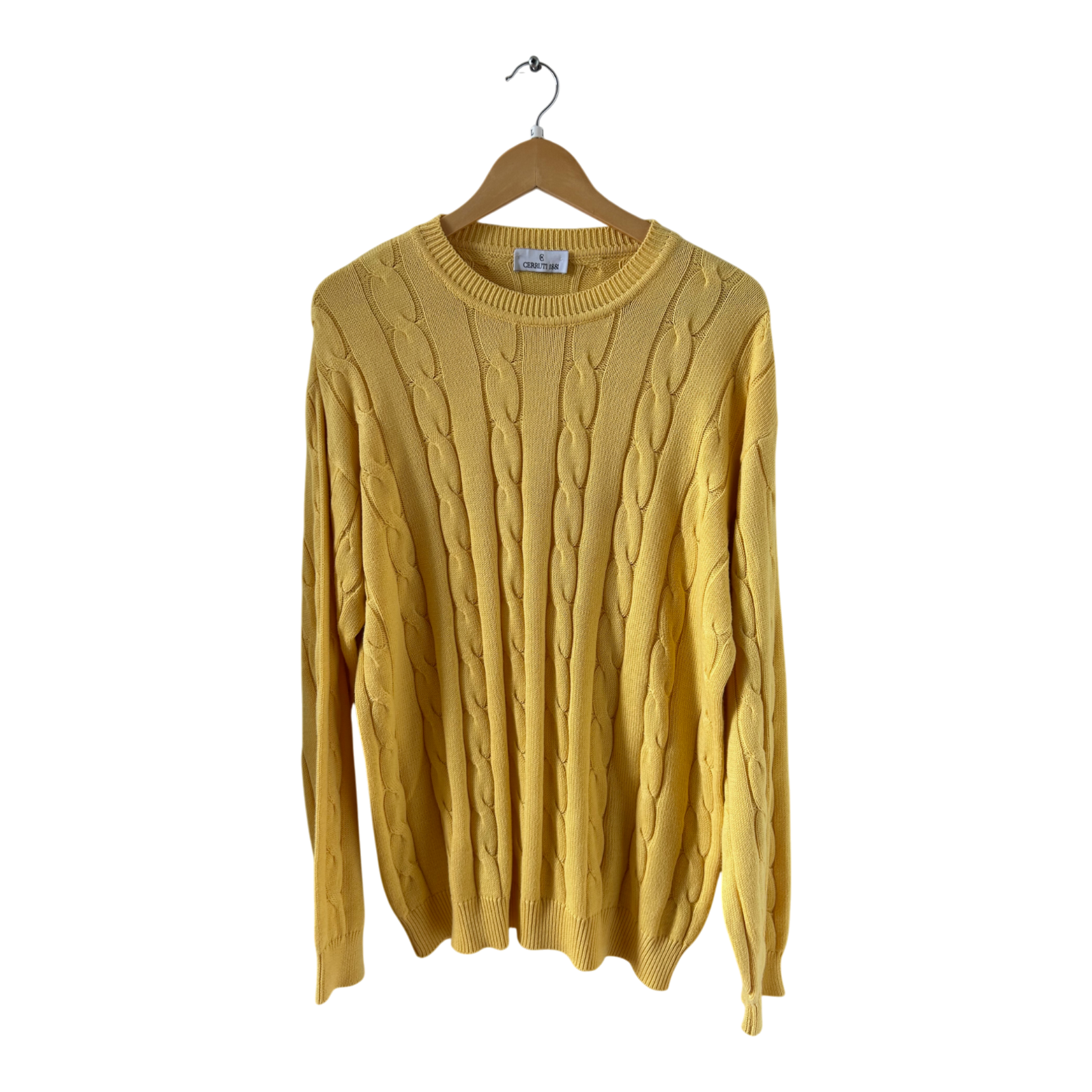 Cerruti 1881 Pullover Herren XL Gelb Baumwolle Made in Italy Strick Classic Chic