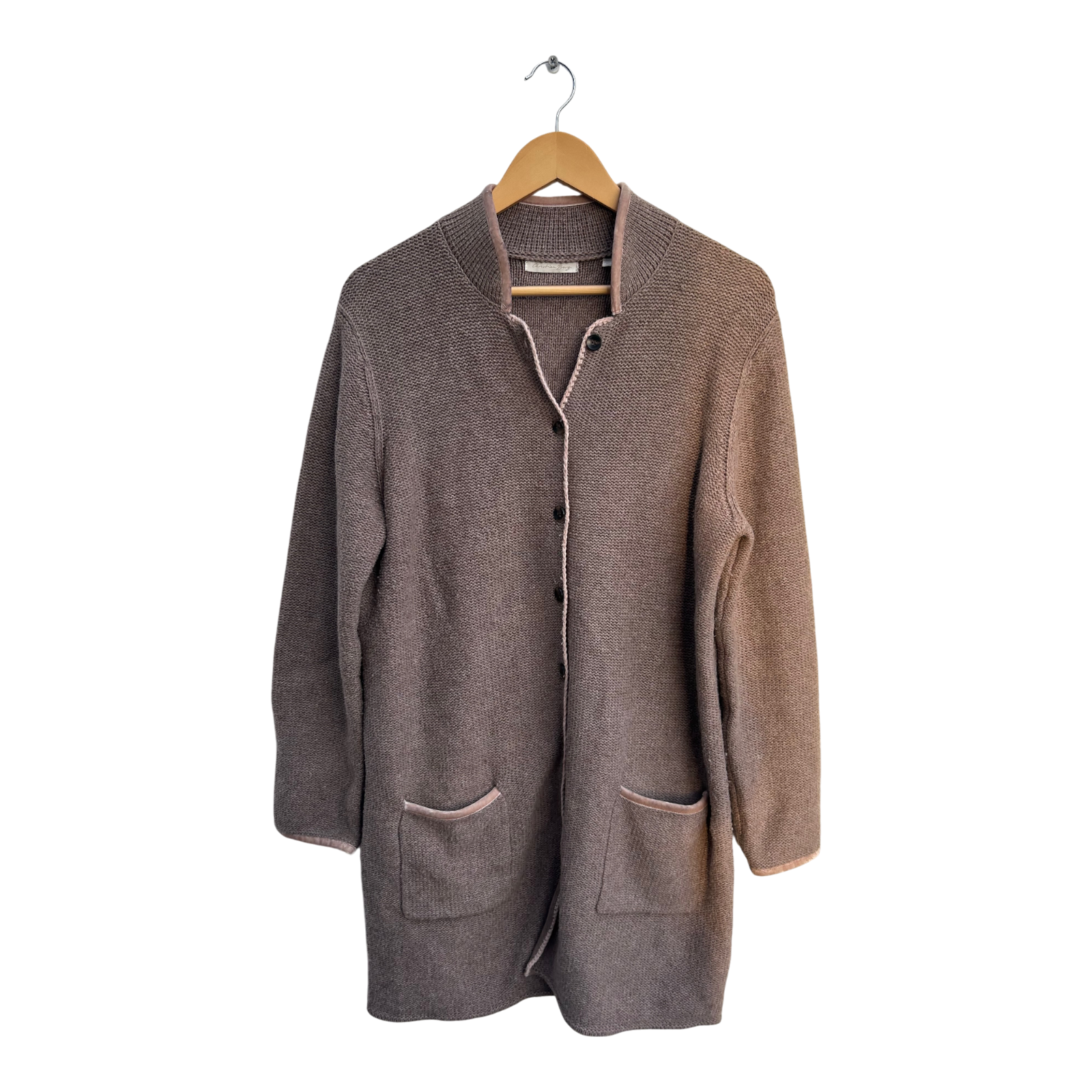 Christian Berg Strickjacke Damen Gr 42 Braun Wollmix Lange Jacke Elegant