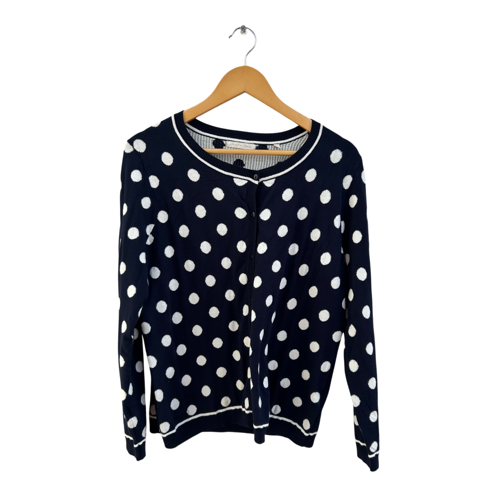 Christian Berg Strickjacke Damen Gr 44 Blau Weiß Punkte Cardigan Viskose Elegant