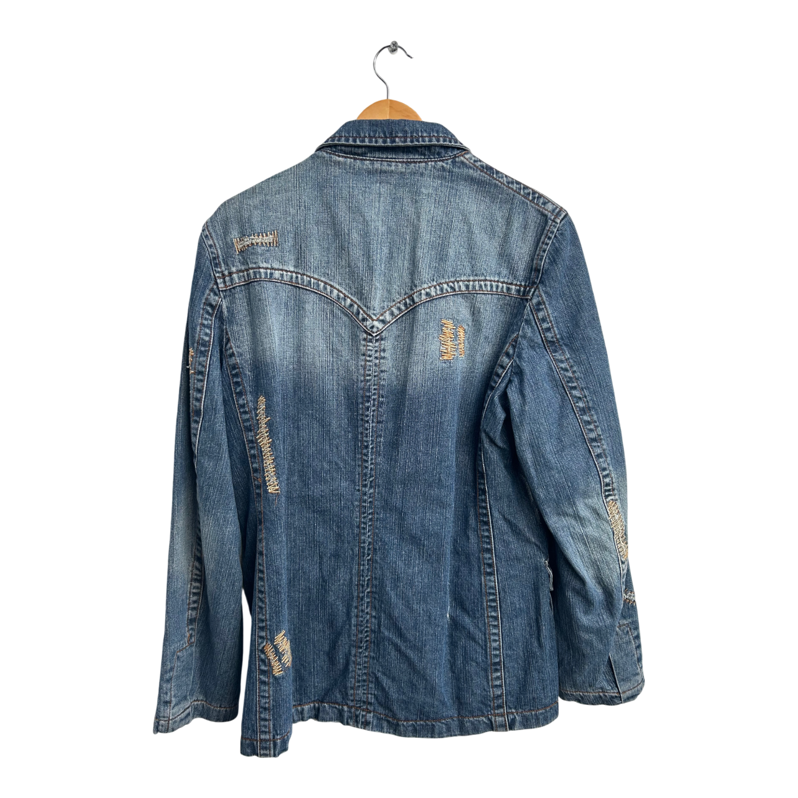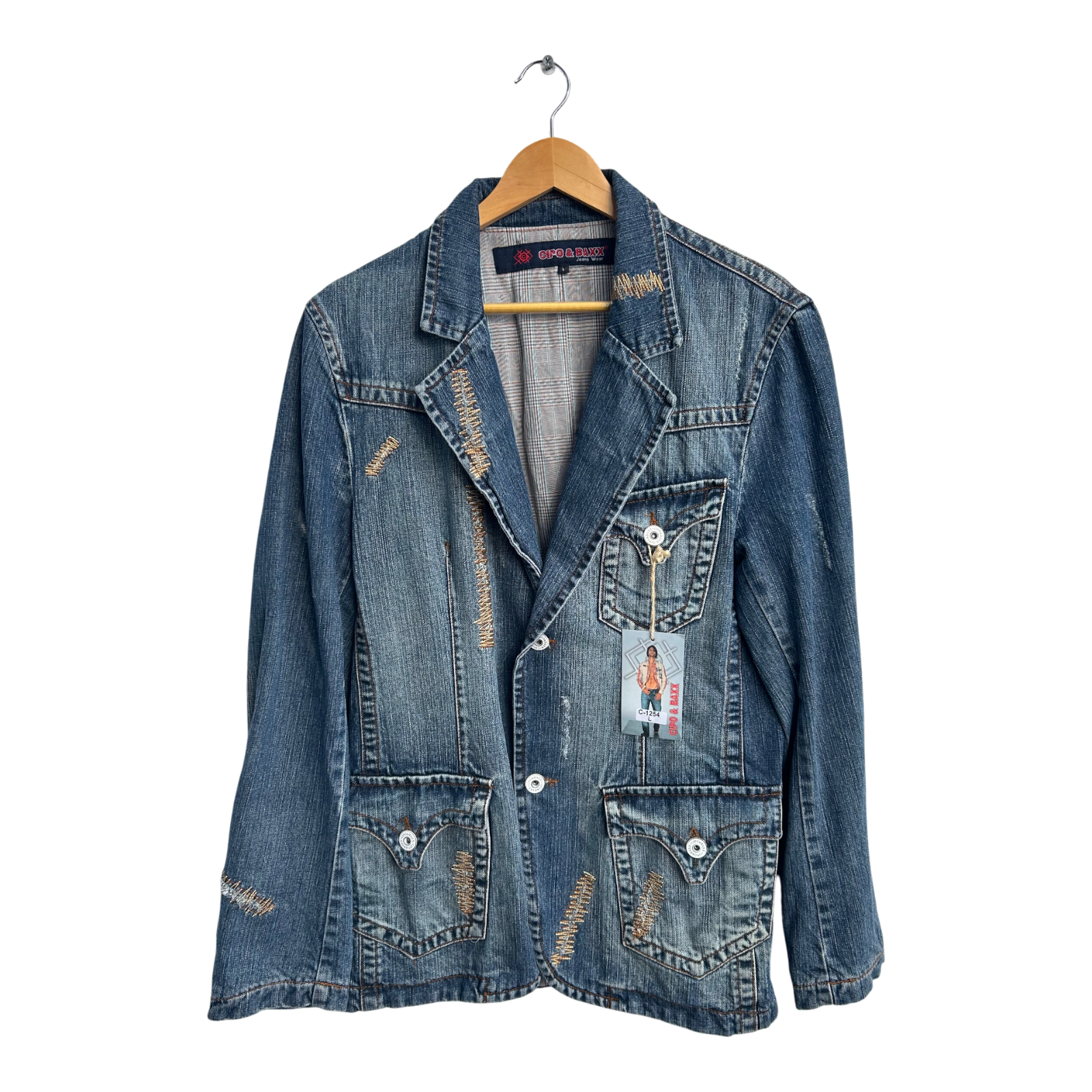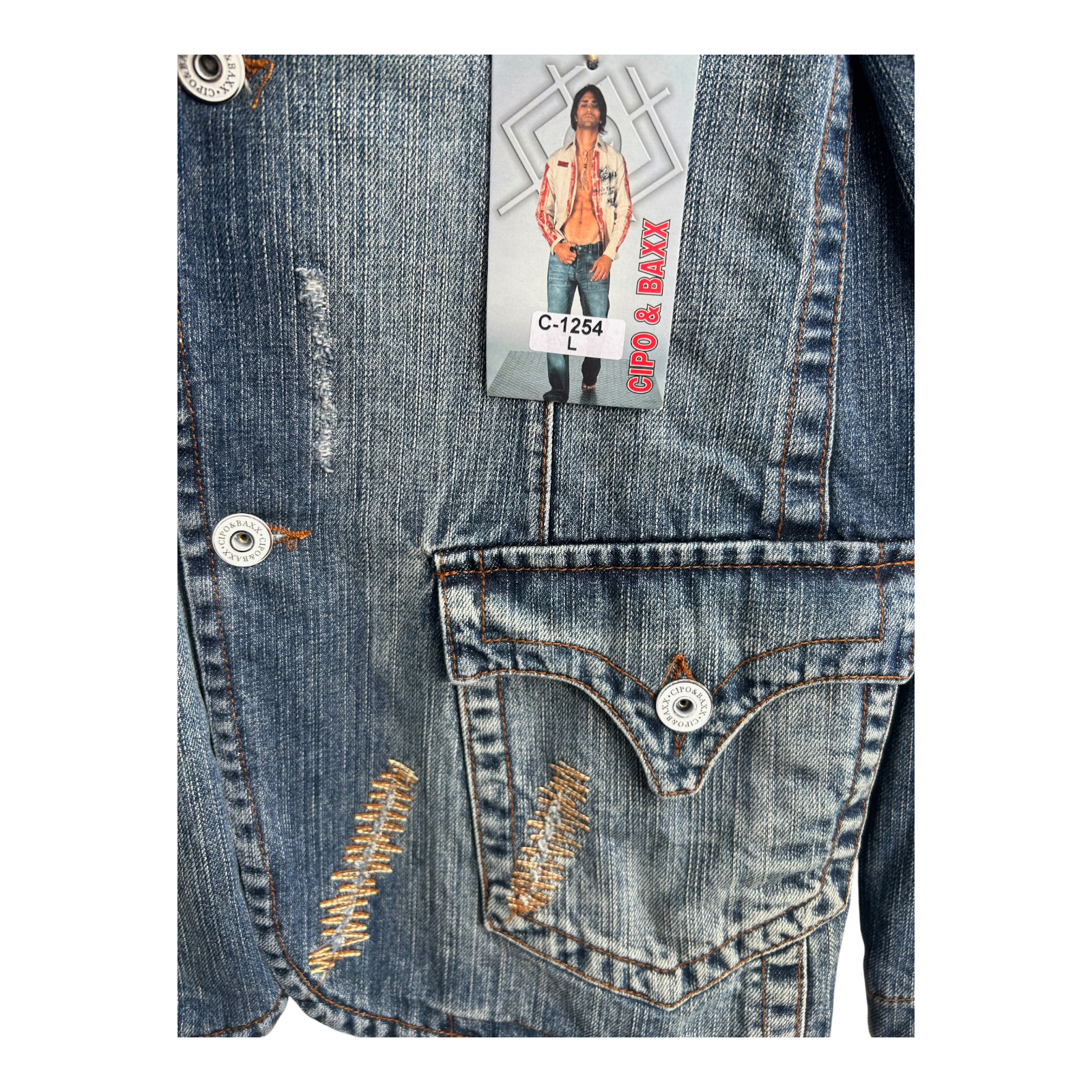 Cipo Baxx Jeans Sakko Jacke Herren Gr L Blau Denim Vintage Destroyed Neu Etikett