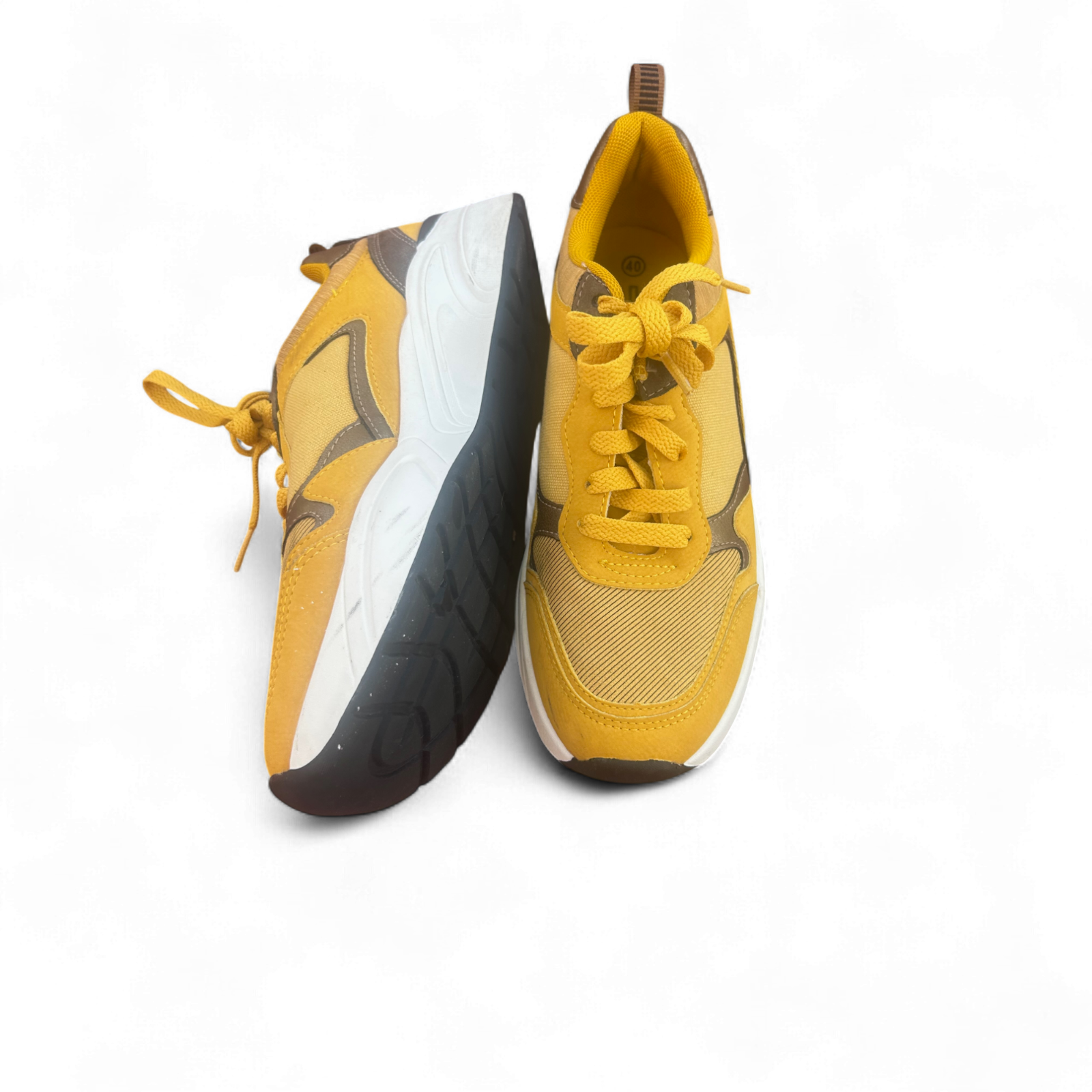 CLO Damen Sneaker Gelb Braun Größe 40 Sportschuhe Retro Look Chunky Sohle