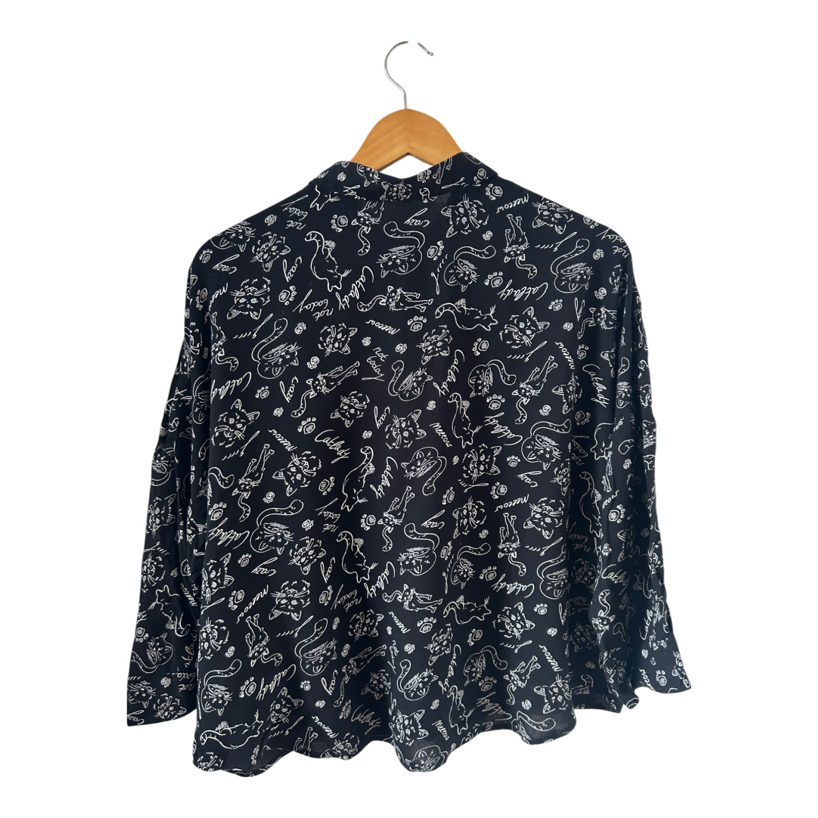 Clockhouse Bluse Katzenmuster Gr 38 Schwarz Weiß Viskose locker verspielt cute