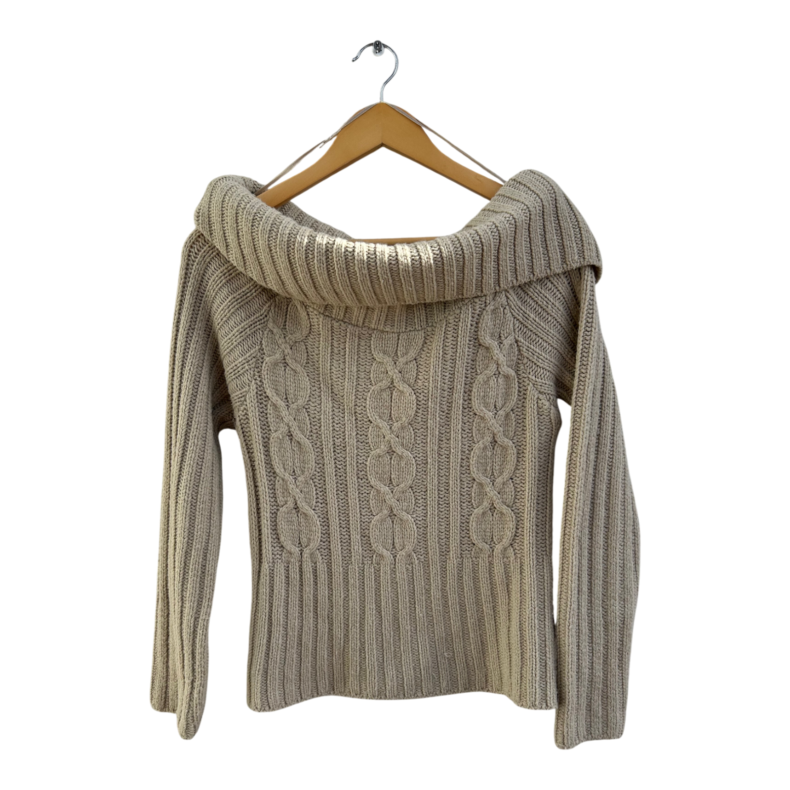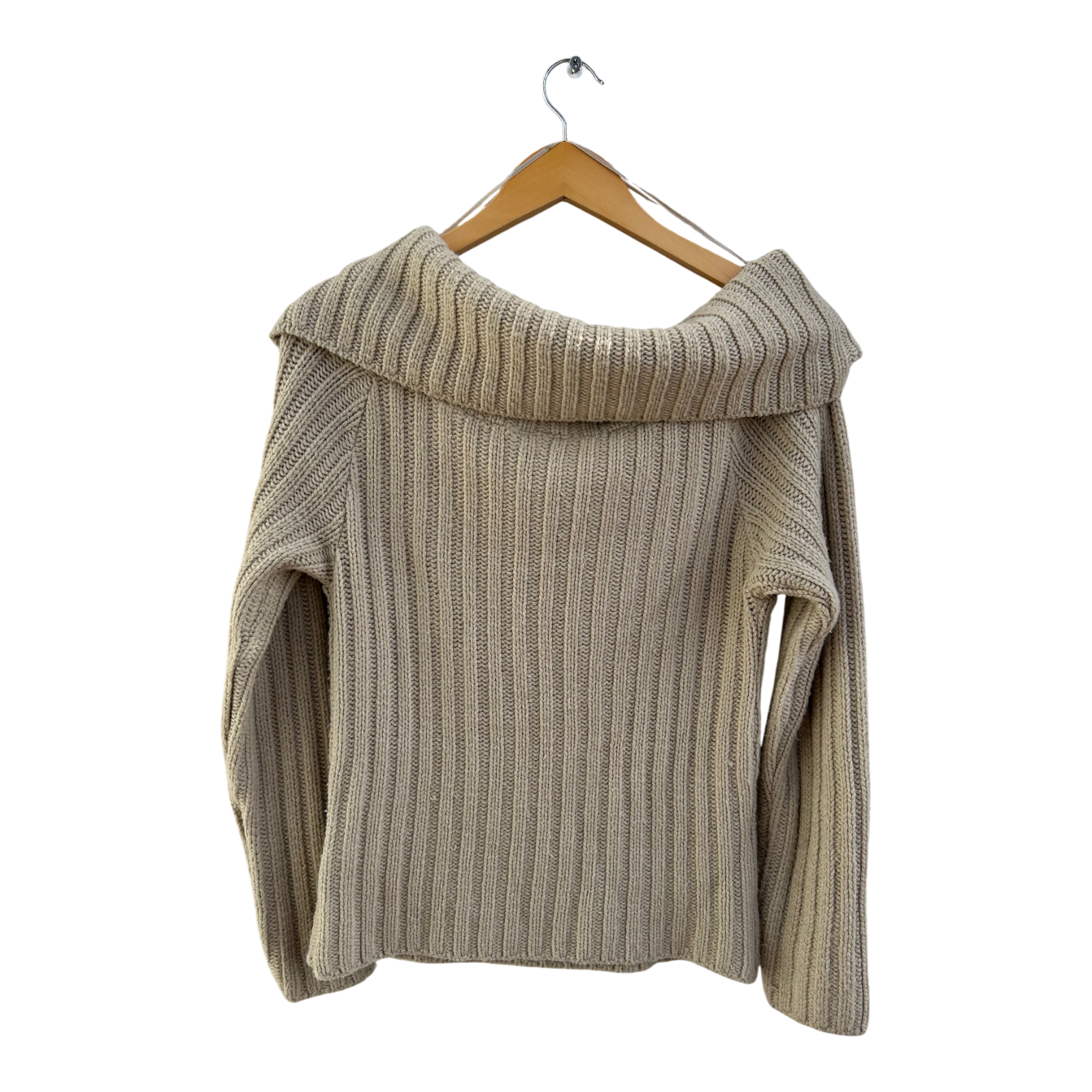 Clockhouse Pullover Damen Gr 36 Beige Grobstrick weiter Kragen Winter Elegant