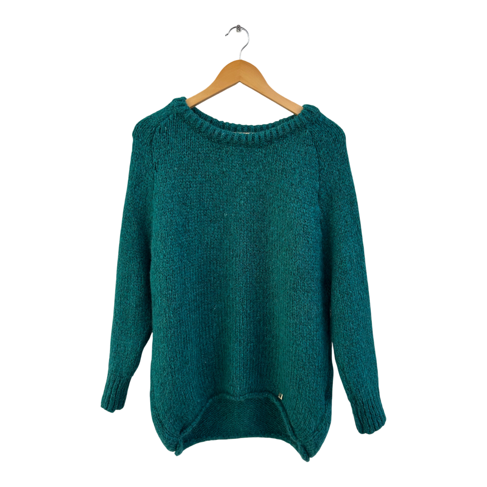 COCOMORE Pullover Damen Gr M Petrol Flauschig Strick Oversize Weich Lang Elegant