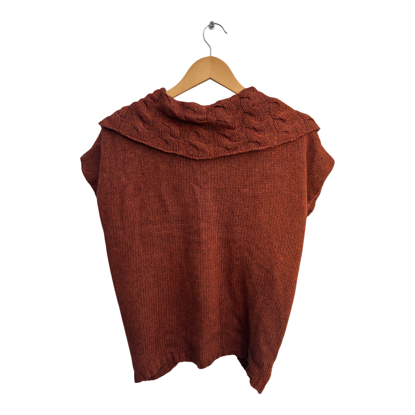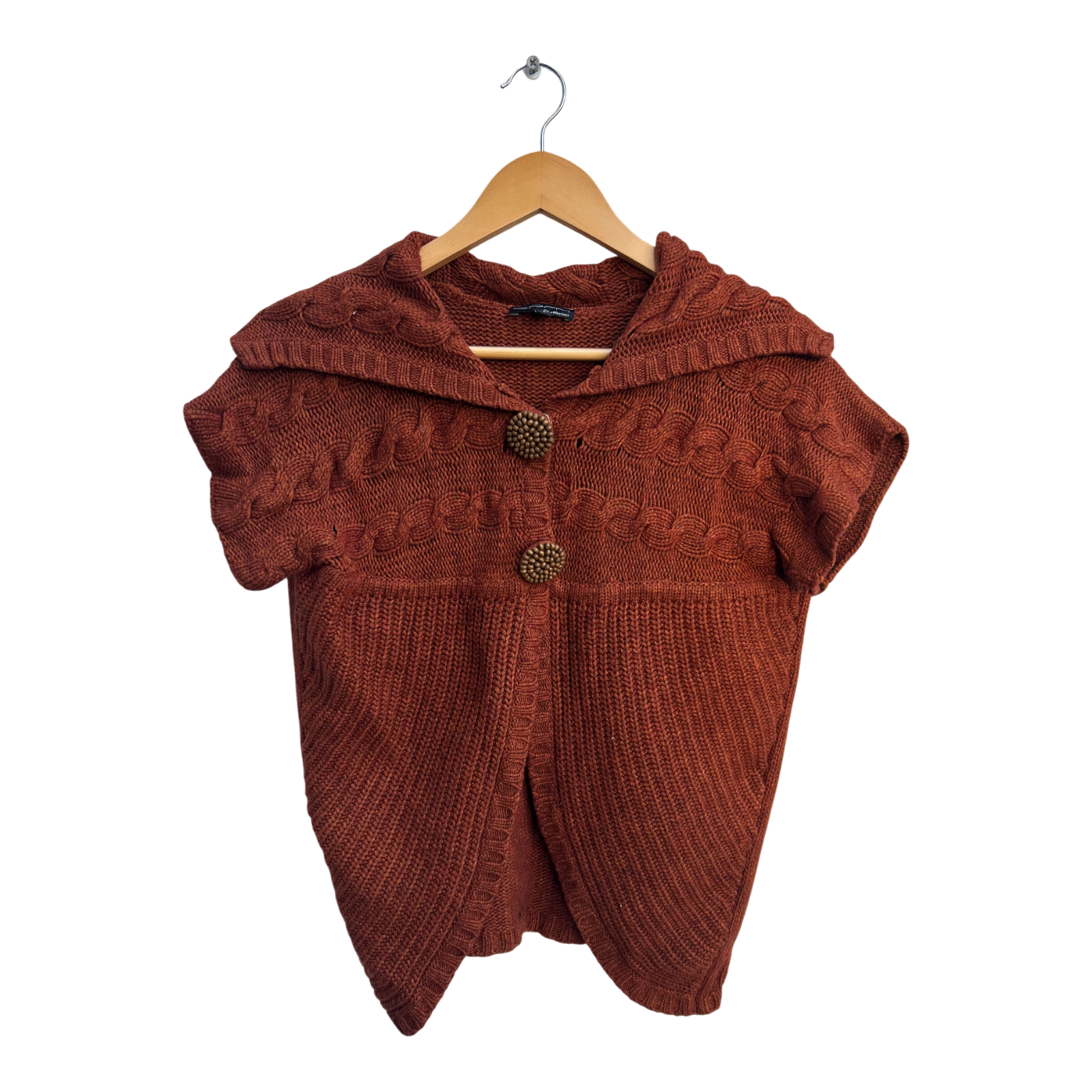 CPM Strickweste Damen Gr L Rostbraun Kurzarm Grobstrick Mit Kapuze Knöpfe