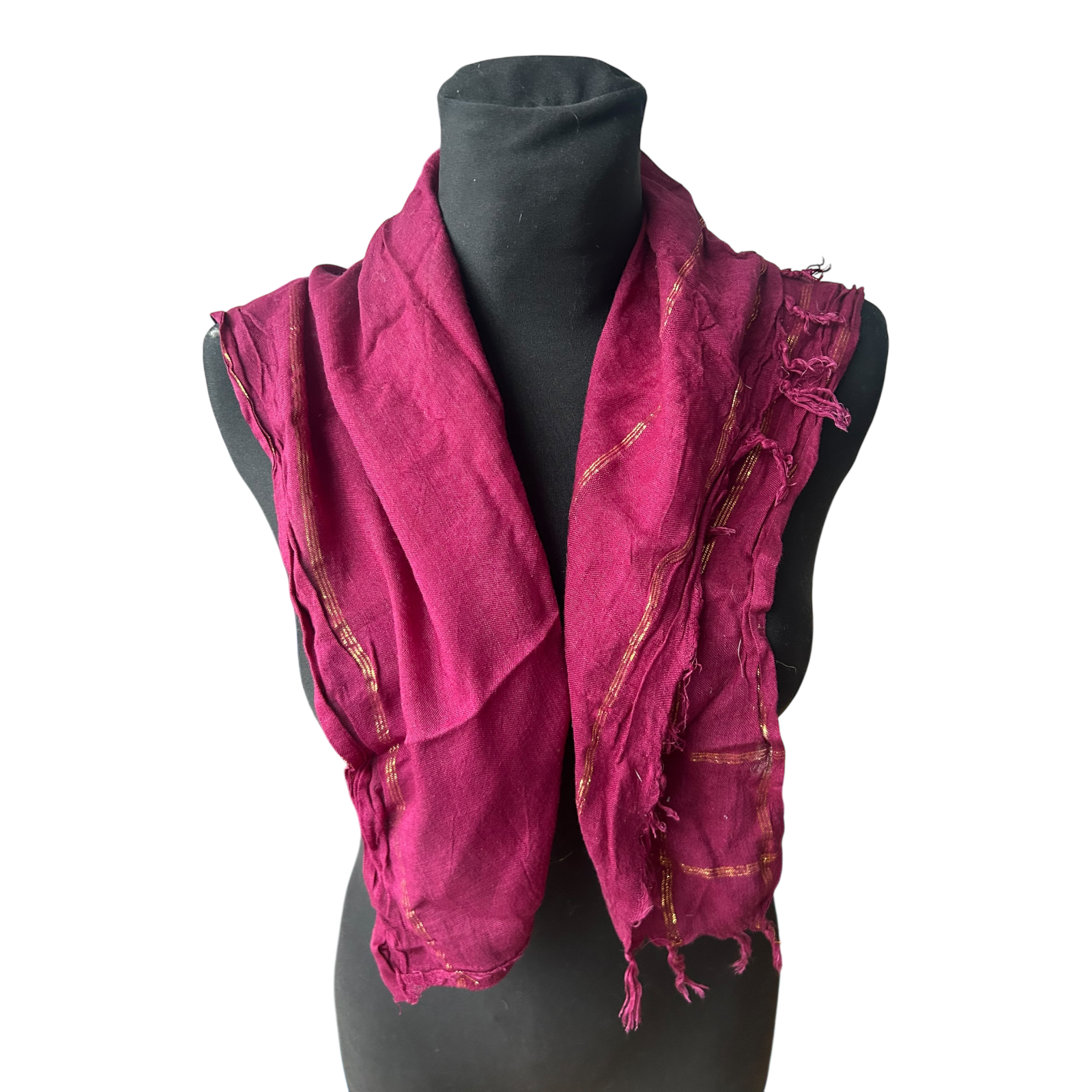 Dieses bordeauxfarbene Halstuch zeigt sich in einem ruhigen, eleganten Design mit feinen eingewebten Goldfäden, die dem Tuch eine dezente, edle Ausstrahlung verleihen ✨