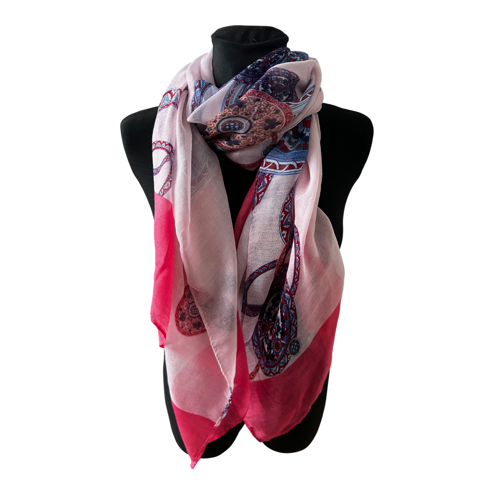 Dieser elegante Schal überzeugt mit einem ausdrucksstarken Ornamentmuster in harmonischen Pink-, Rosa- und Blautönen. Das Design wirkt feminin und stilvoll zugleich und setzt einen besonderen Akzent zu schlichten Outfits, Blazern oder Sommerkleidern. Durch das großzügige Maß von 180 × 70 cm lässt sich der Schal vielseitig tragen – locker drapiert, gewickelt oder auch als leichte Stola. Das Material aus 100% Viskose sorgt für ein angenehm weiches, fließendes Tragegefühl und macht den Schal ideal für Frühling, Sommer und die Übergangszeit. ✨🧣