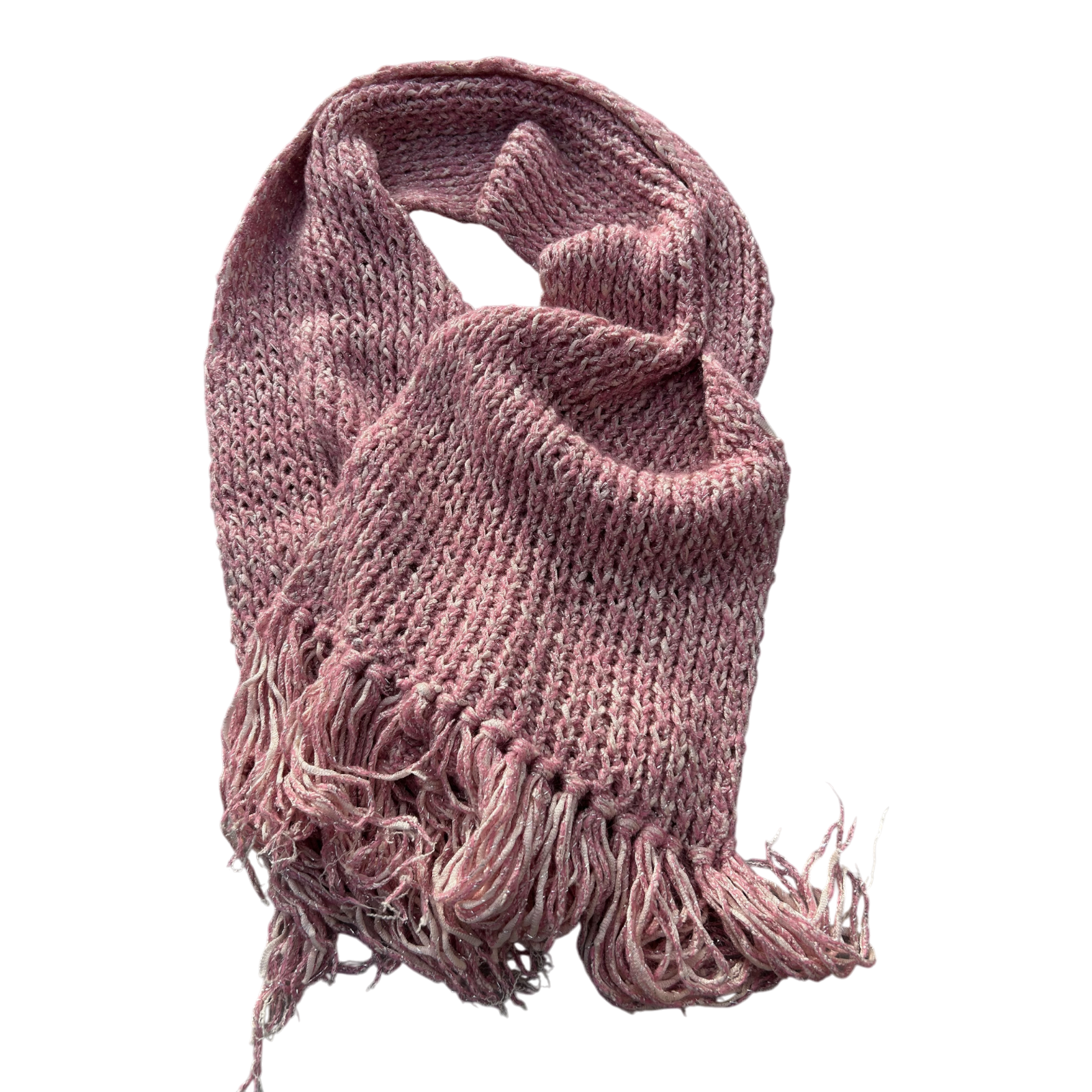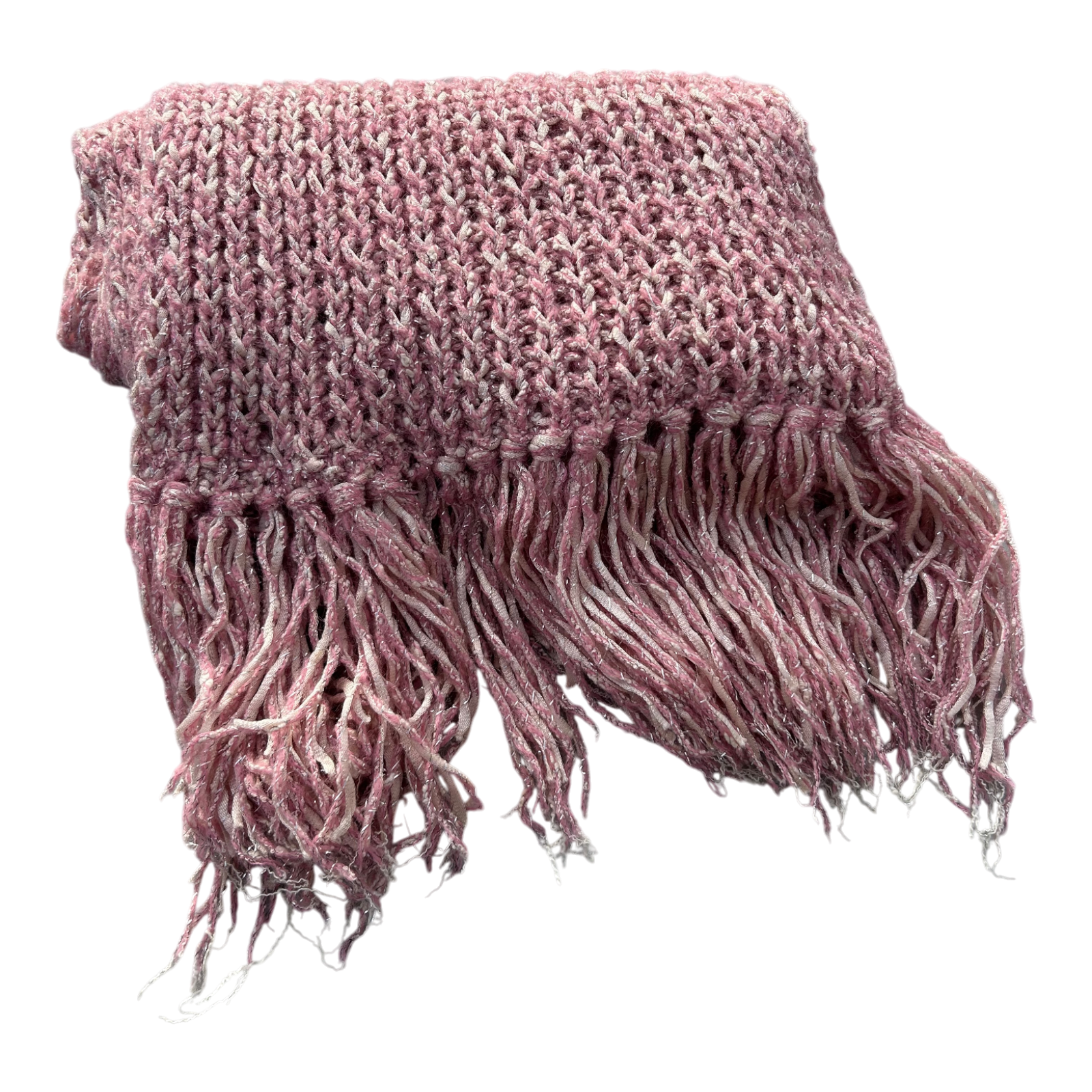 Damen Schal Strick Rosa Fransen weich Winter Accessoire kuschelig warm meliert
