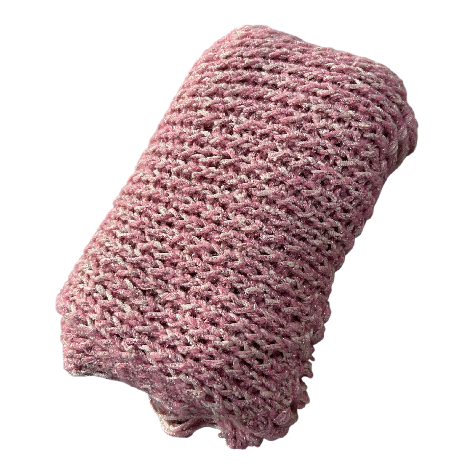 Dieser weiche Strickschal in Rosa mit feinen Silberfäden ist ein schöner Begleiter für kühle Tage und verleiht Outfits eine gemütliche Note. Die Fransen sorgen für einen modernen Look und die melierte Struktur wirkt lebendig. Mit seinen Maßen von ca. 30 cm in der Breite und etwa 185 cm in der Länge lässt er sich angenehm mehrfach wickeln. Der Zustand ist sehr gut 🙂