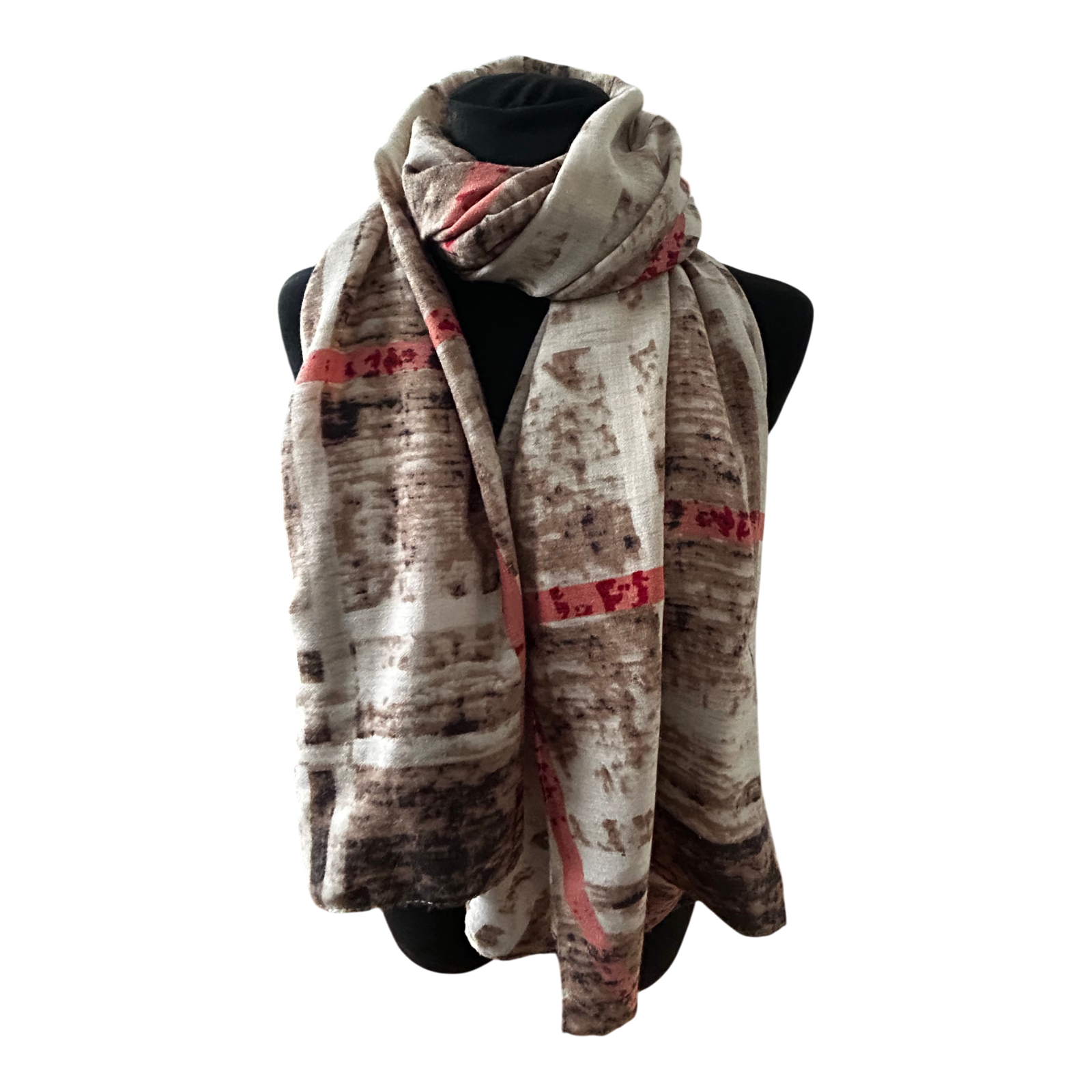 Damen Schal Tuch Braun Creme Rot Muster Herbst Winter Elegant Viskose