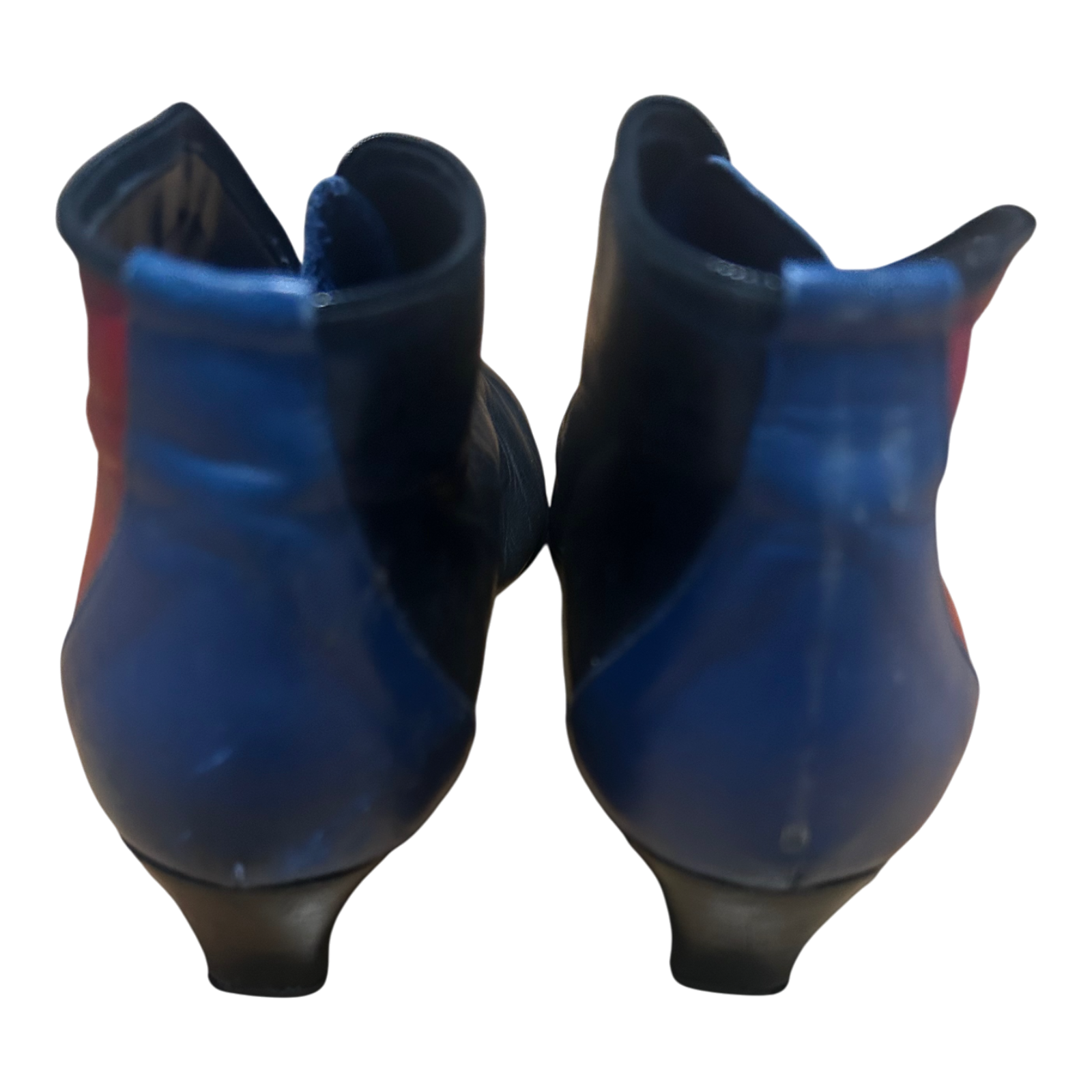 Diese eleganten Damen-Stiefeletten in Größe 39 überzeugen durch ihr besonderes zweifarbiges Design in Schwarz-Rot und Blau sowie durch die hochwertige Verarbeitung aus festem Echtleder.