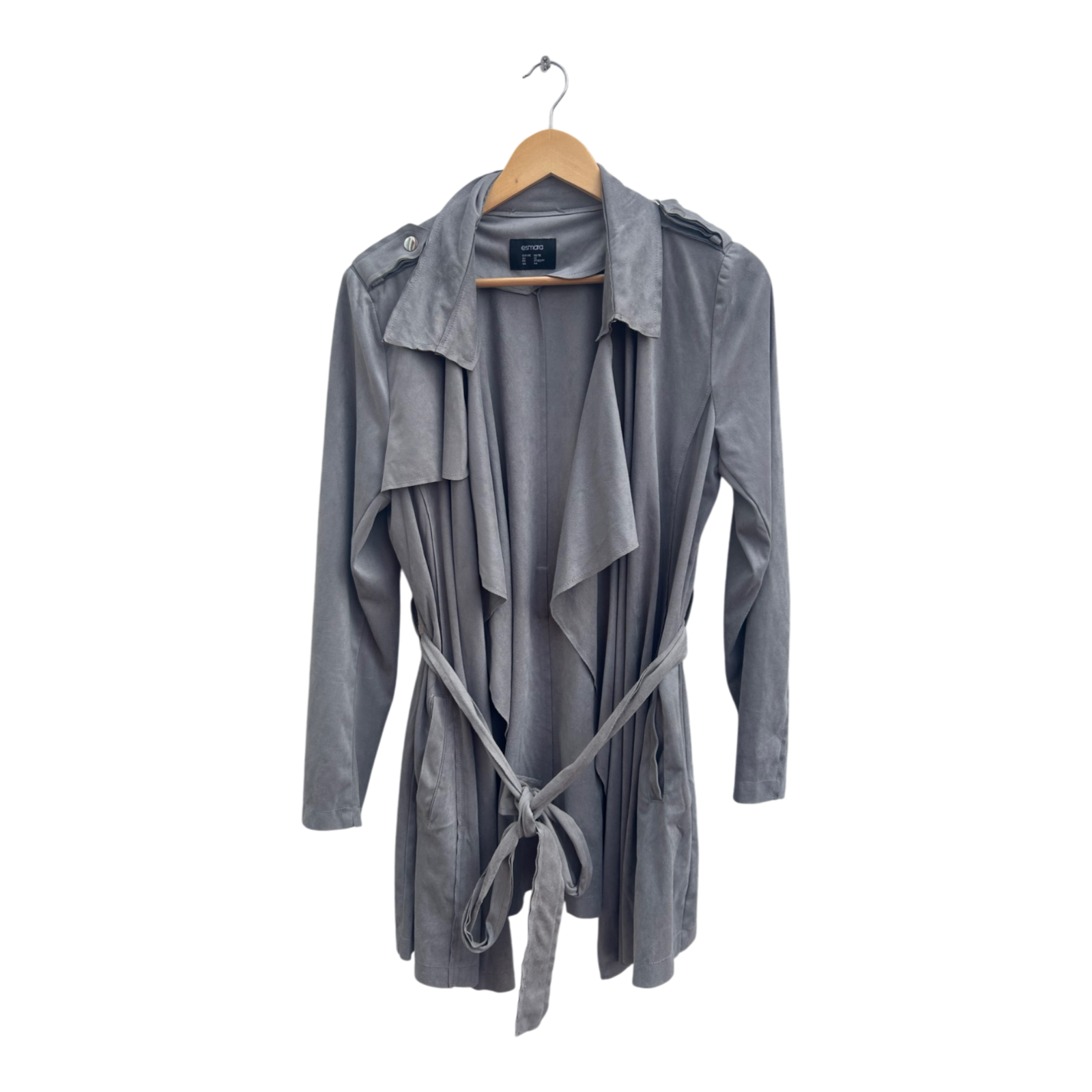 Damen Trenchcoat Gr 42 Grau Esmara Wasserfall Mantel Bindegürtel Übergangszeit