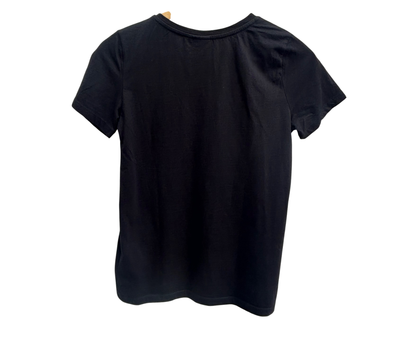 Original Disney T-Shirt mit Mickey-Mouse-Motiv in Größe S aus 100 % Baumwolle. Brustweite 40 cm, Länge 60 cm. Das schwarze Shirt zeigt eine stilisierte Mickey-Mouse-Silhouette aus kleinen silberfarbenen Nieten, die dezent glänzen und dem klassischen Design einen besonderen Akzent verleihen. Der Stoff ist angenehm weich, der Schnitt leicht tailliert und modern. Das Shirt wirkt nahezu neuwertig und ist ein vielseitiges Lieblingsstück für Freizeit und Alltag – stilvoll, bequem und ikonisch. 🌿