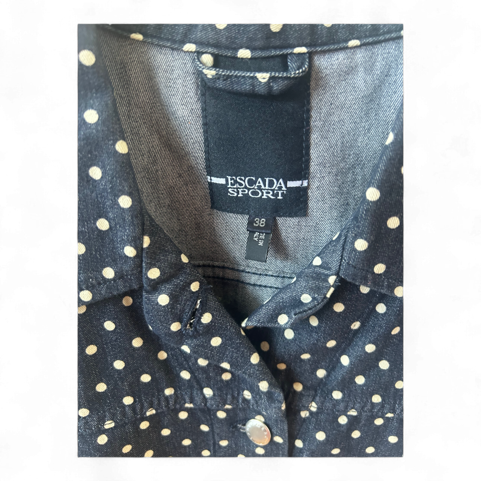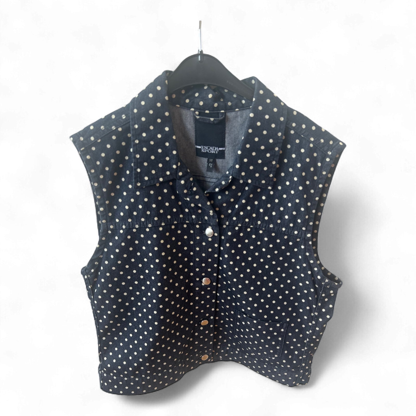 Escada Sport Weste Gr 38 Made in Italy Blau Punkte Baumwollmix Sommer Elegant