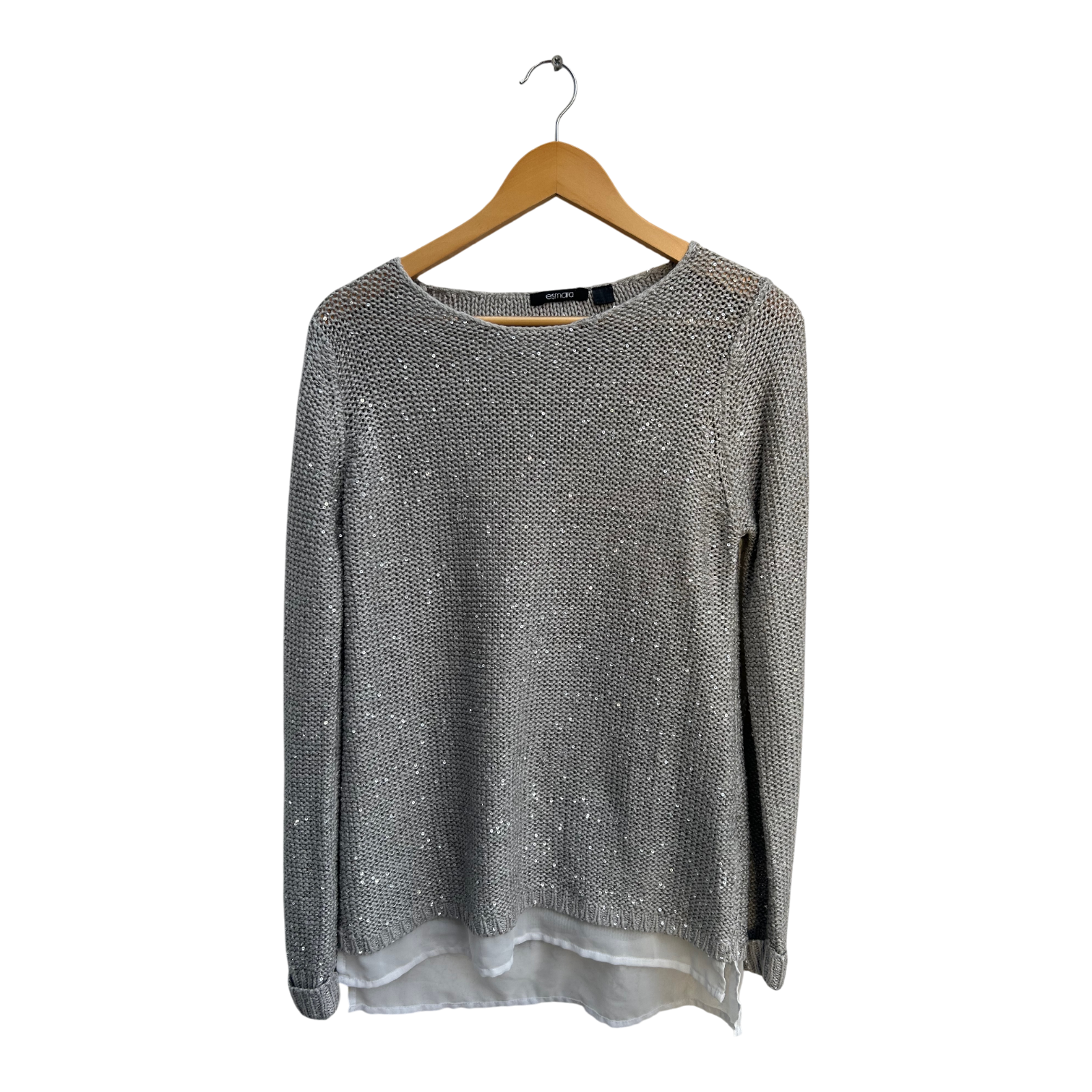 Esmara Pullover Damen Gr 38 Grau Glitzer Lagenlook Chiffon Elegant Langarm